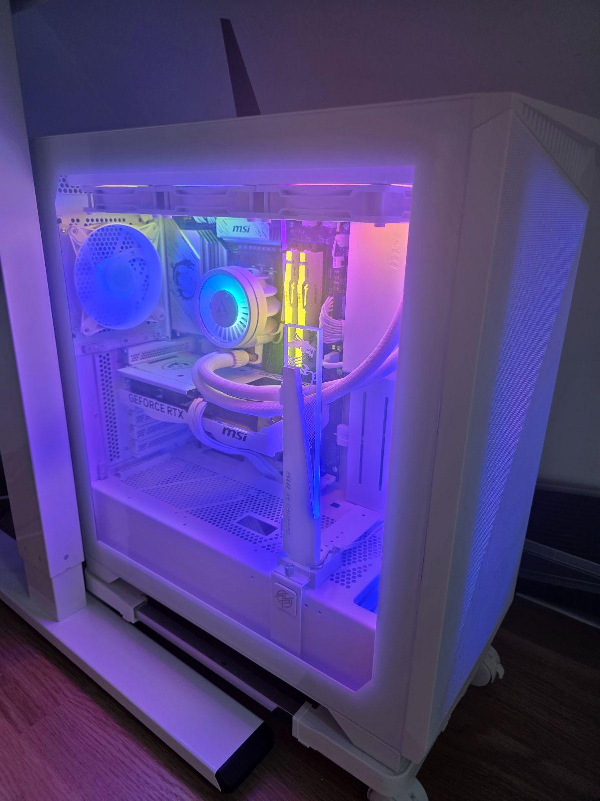 Boitier super pratique, beaucoup de place pour y installer les composants, également beaucoup d'espace à l'arrière pour gérer le câblage. Des attache sont intégrés dans le boîtier pour fixer les câbles ! Le RGB est sympa, surtout avec le support de GPU qui rend le tout encore plus beau. Niveau ventilation aucun soucis, ça fonctionne très très bien !