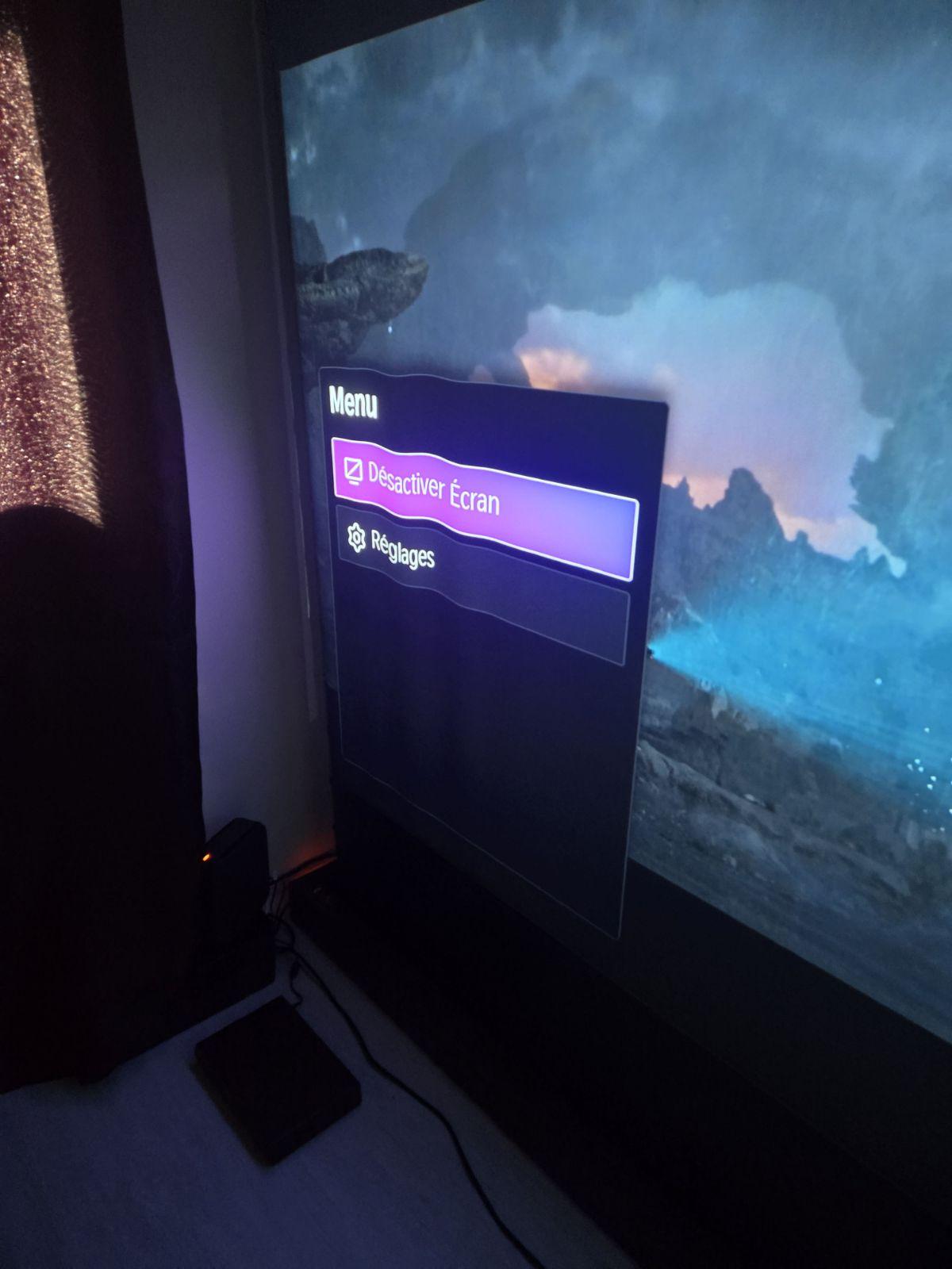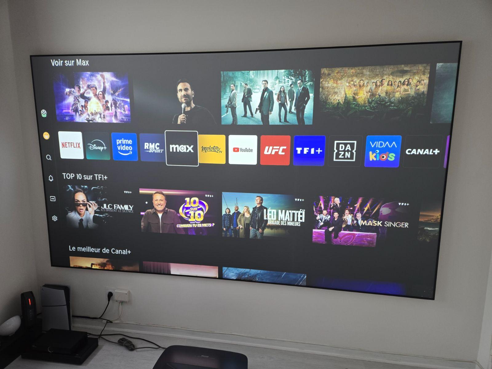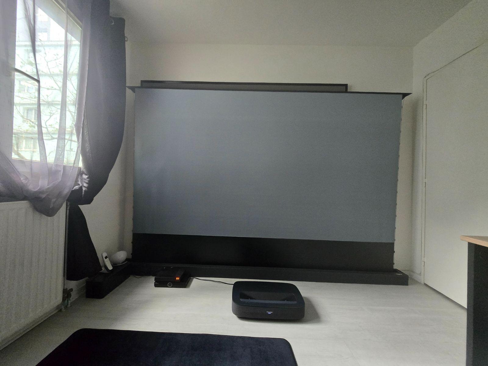 - Surface de projection grise destinée aux projections UST (Ultra-Courte Focale) et ALR (Rejet de Lumière Ambiante)