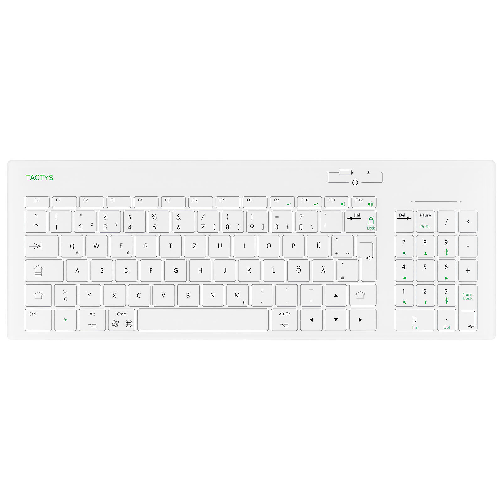 Le clavier sans fil Tactys Slim 1007 possède 96 touches dont un pavé numérique. Idéal pour les environnements professionnels, il bénéficie d'une surface en verre trempé totalement lisse facile à nettoyer et dispose de raccourcis clavier et de fonctions ergonomiques. Il pourra être complété par une souris médicale (non fournie).