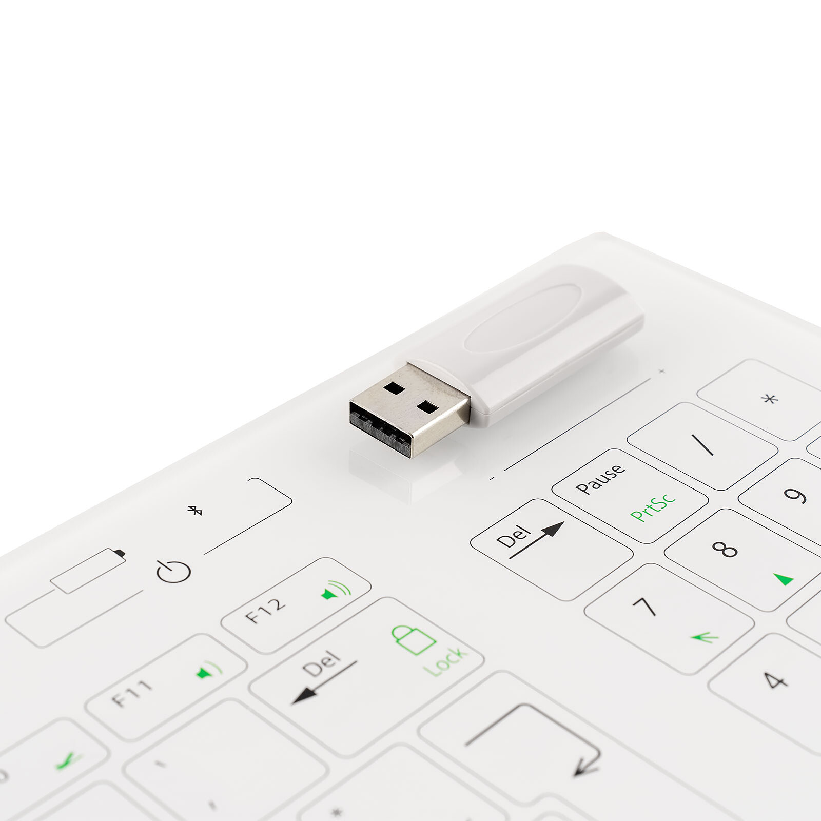 Clavier sans fil extraplat anti-statique avec pavé numérique - surface en verre trempé - IP65 - Bluetooth 4.2 / USB - AZERTY, Français