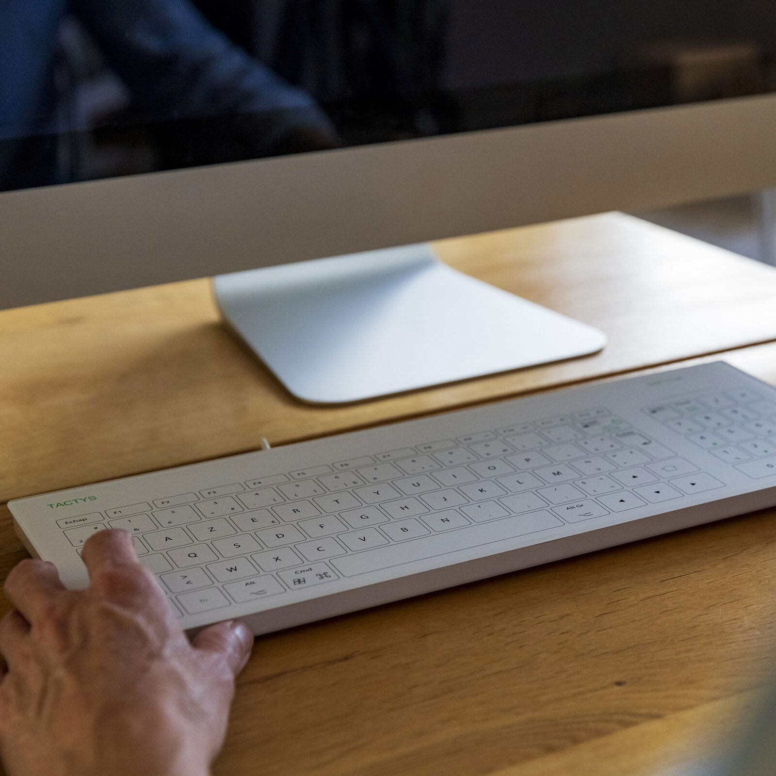 Ce clavier Slim 1007 de Tactys est équipé de série de la nouvelle fonction TapTop sécurisant la frappe en corrigeant les erreurs de saisie et de la fonction Lockin bloquant le clavier lors du nettoyage ou en cas de manipulation maladroite.