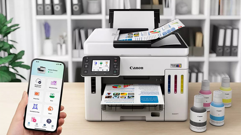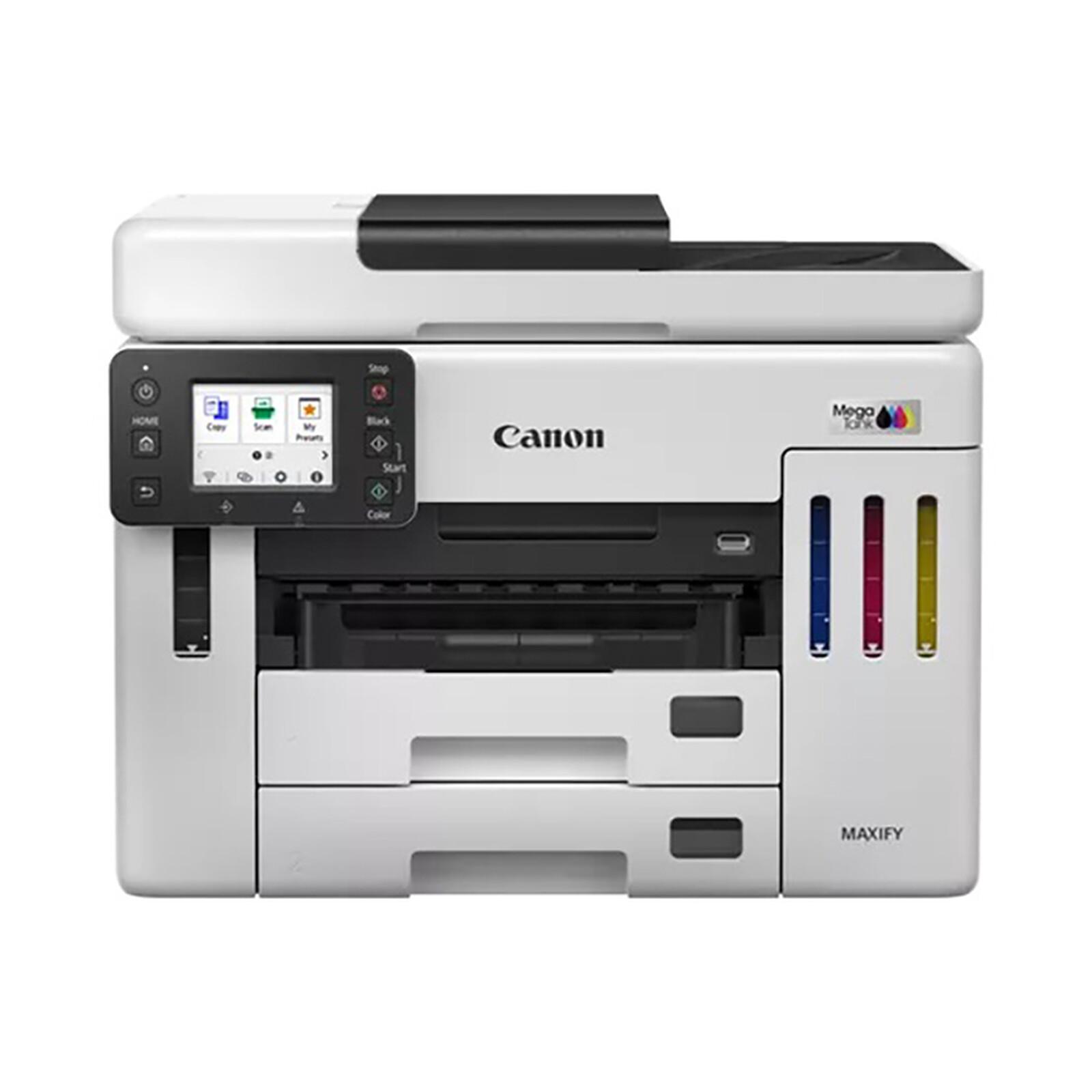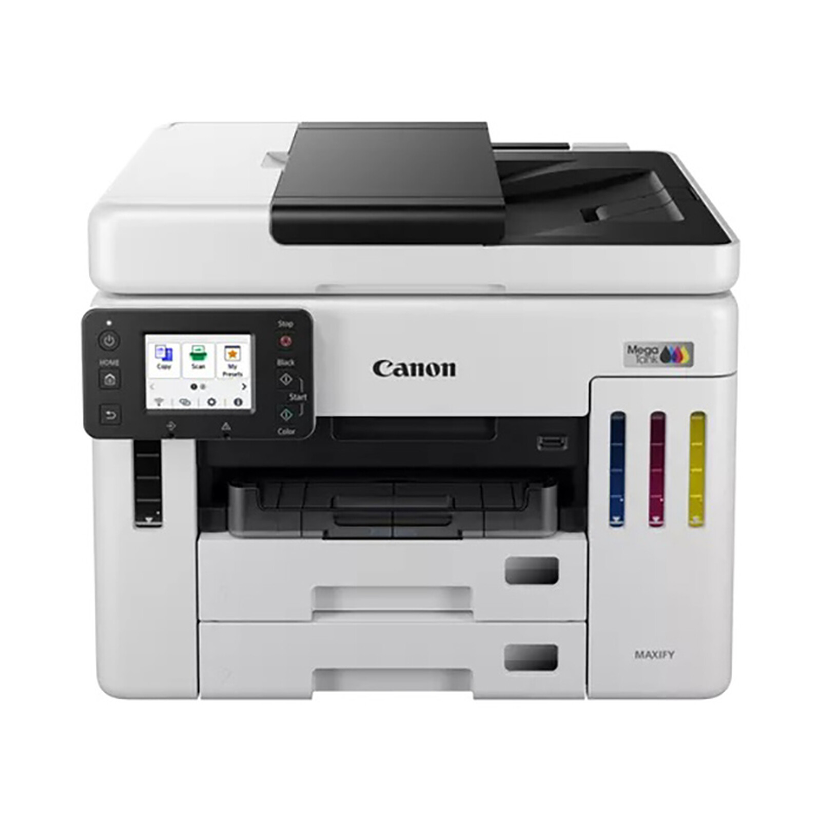 La Canon MAXIFY GX7150 est une imprimante 4-en-1 qui a été conçue pour les petites entreprises ayant besoin d’une impression couleur quotidienne et rapide. Elle offre de nombreuses fonctionnalités, une capacité papier de 600 feuilles, un chargeur automatique de documents recto verso de 50 feuilles et un faible coût de revient. Par rapport à sa devancière, elle bénéficie d’amélioration niveau connectivité et sécurité afin de répondre au mieux au standards les plus récents. Avec cette imprimante, améliorez la productivité de vos impressions professionnelles grâce à MegaTank et ses réservoirs d'encre rechargeables à haut rendement. Vous bénéficierez d'impressions de qualité professionnelle et d'un coût total de possession extrêmement faible.