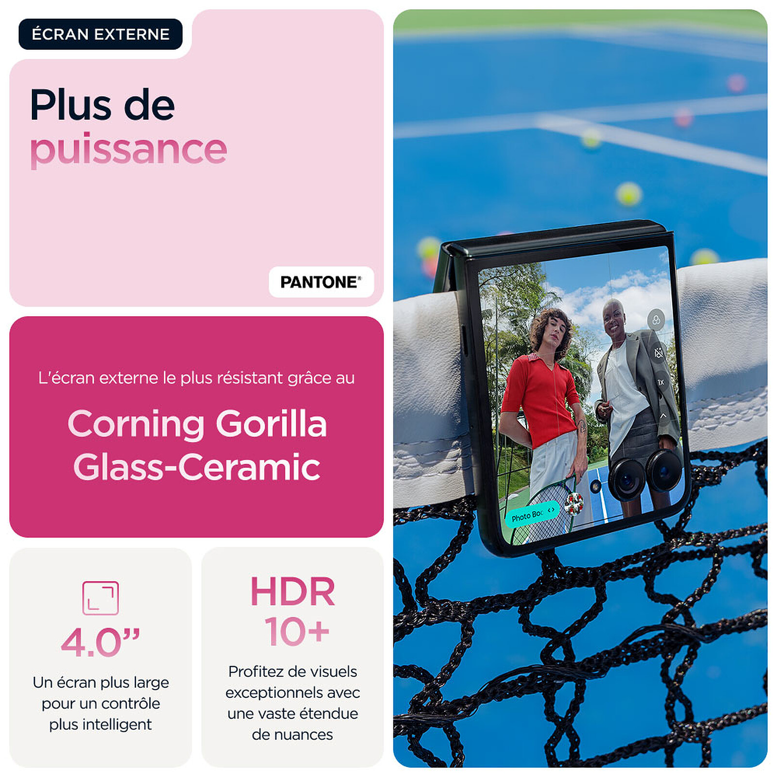 Le Motorola Razr 60 Ultra redéfinit les standards des smartphones pliables avec une combinaison parfaite de design raffiné, de performances de pointe et d'innovations intelligentes. Équipé d'un écran interne AMOLED de 7 pouces à 165 Hz et d'un écran externe de 4 pouces, il offre une expérience visuelle immersive. Son processeur Snapdragon 8 Elite, associé à 16 Go de RAM et 512 Go de stockage, garantit une fluidité exceptionnelle. Avec une batterie de 4700 mAh et une charge rapide de 68 W, ce bijou technologique est prêt à vous accompagner toute la journée.
