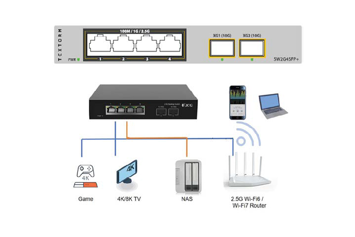 TEXTORM Switch 4 ports 2.5 GbE + 2 ports SFP+ 10G |