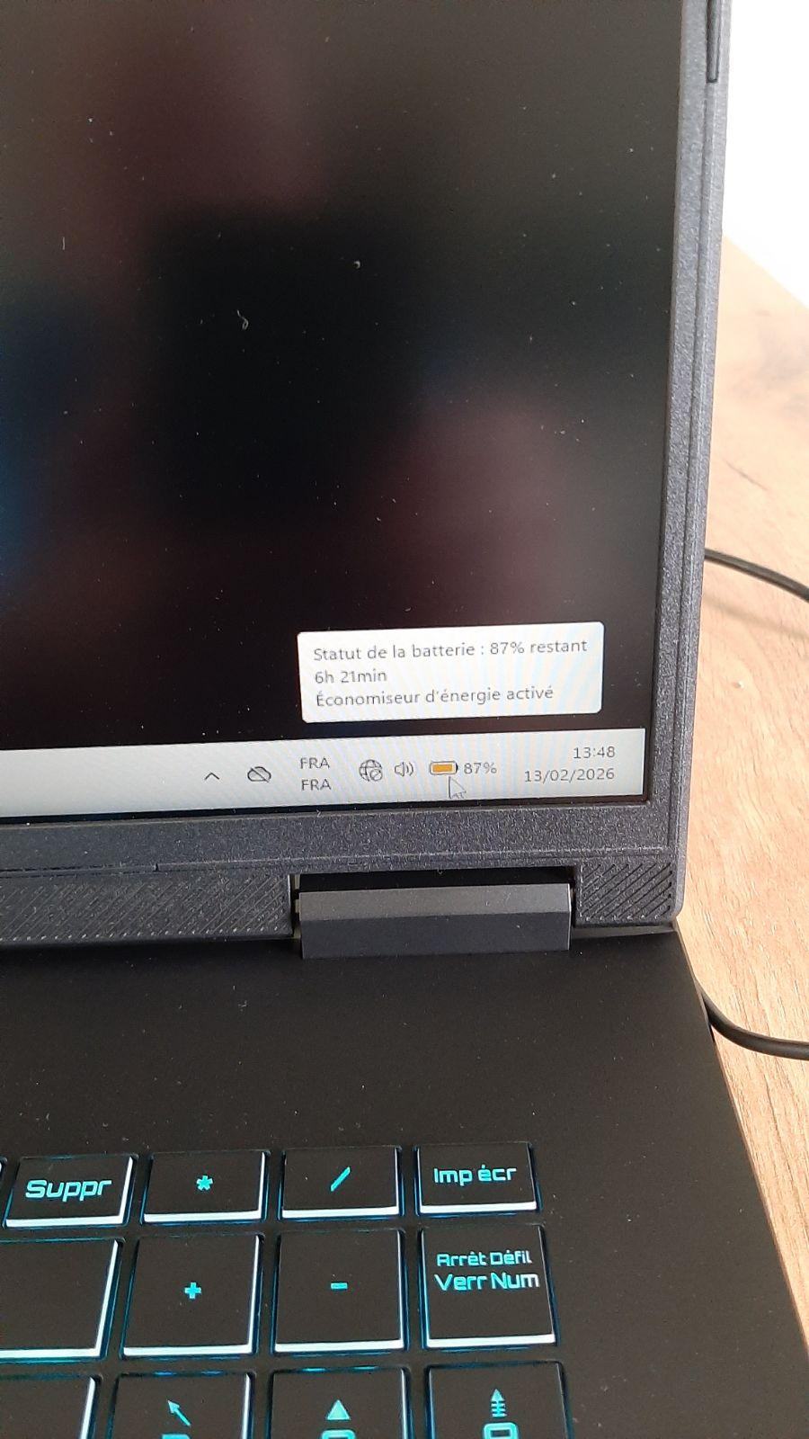 ATTENTION: avant d'allumer le PC pour la première fois, charger la batterie à 100%, env. 45 mn