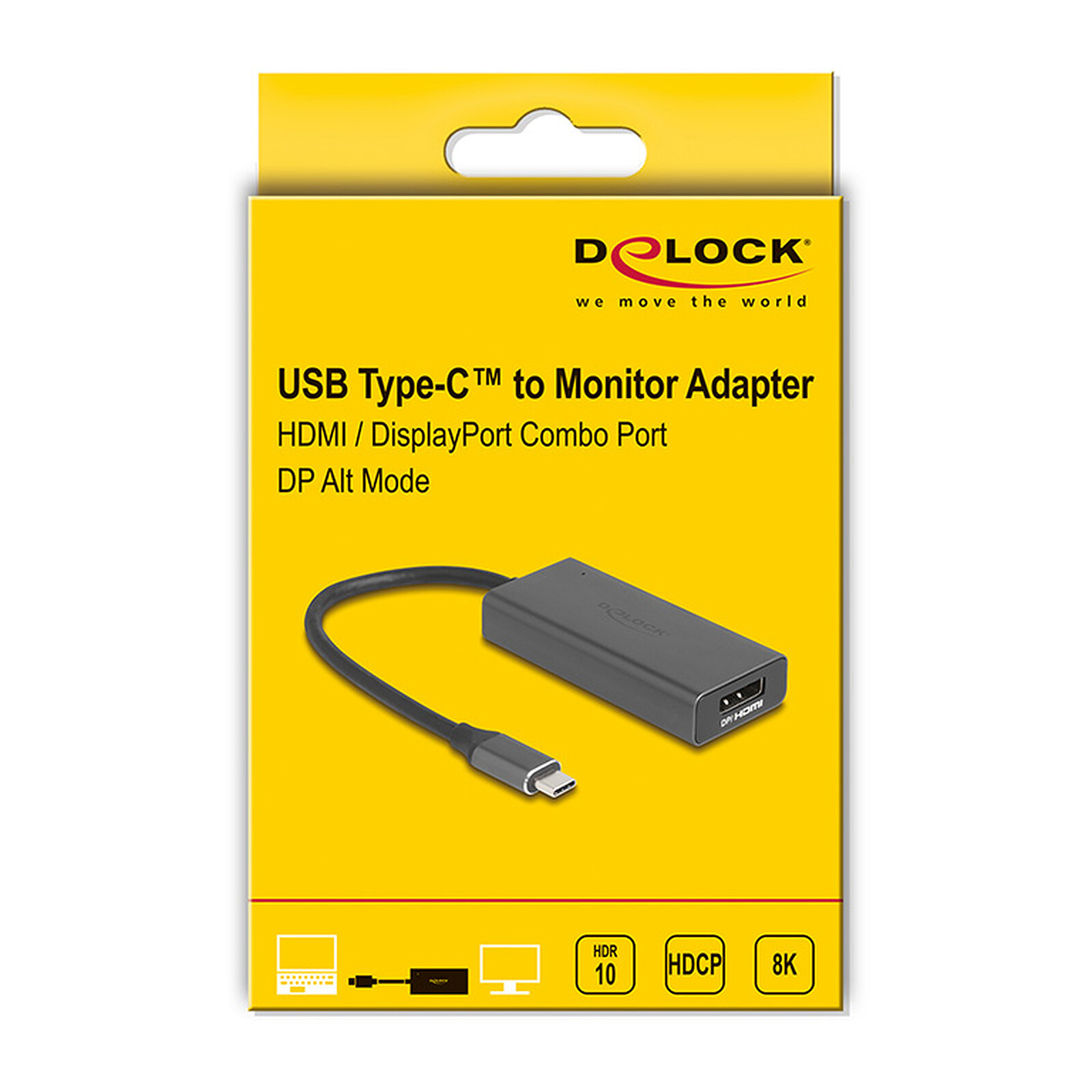 Cet adaptateur de DeLock est adapté à la connexion d’un moniteur HDMI ou DisplayPort en résolution 8K Ultra HD avec un ordinateur avec une interface USB-C prenant en charge le mode alternatif DisplayPort. Ainsi, l’adaptateur peut être connecté à un ordinateur portable, un MacBook ou encore Chromebook. De plus, l’adaptateur peut également être utilisé avec une interface Thunderbolt 3 ou Thunderbolt 4. Le port "Dualport" est spécialement conçu pour permettre de se connecter soit à une prise HDMI, soit à une prise DisplayPort.