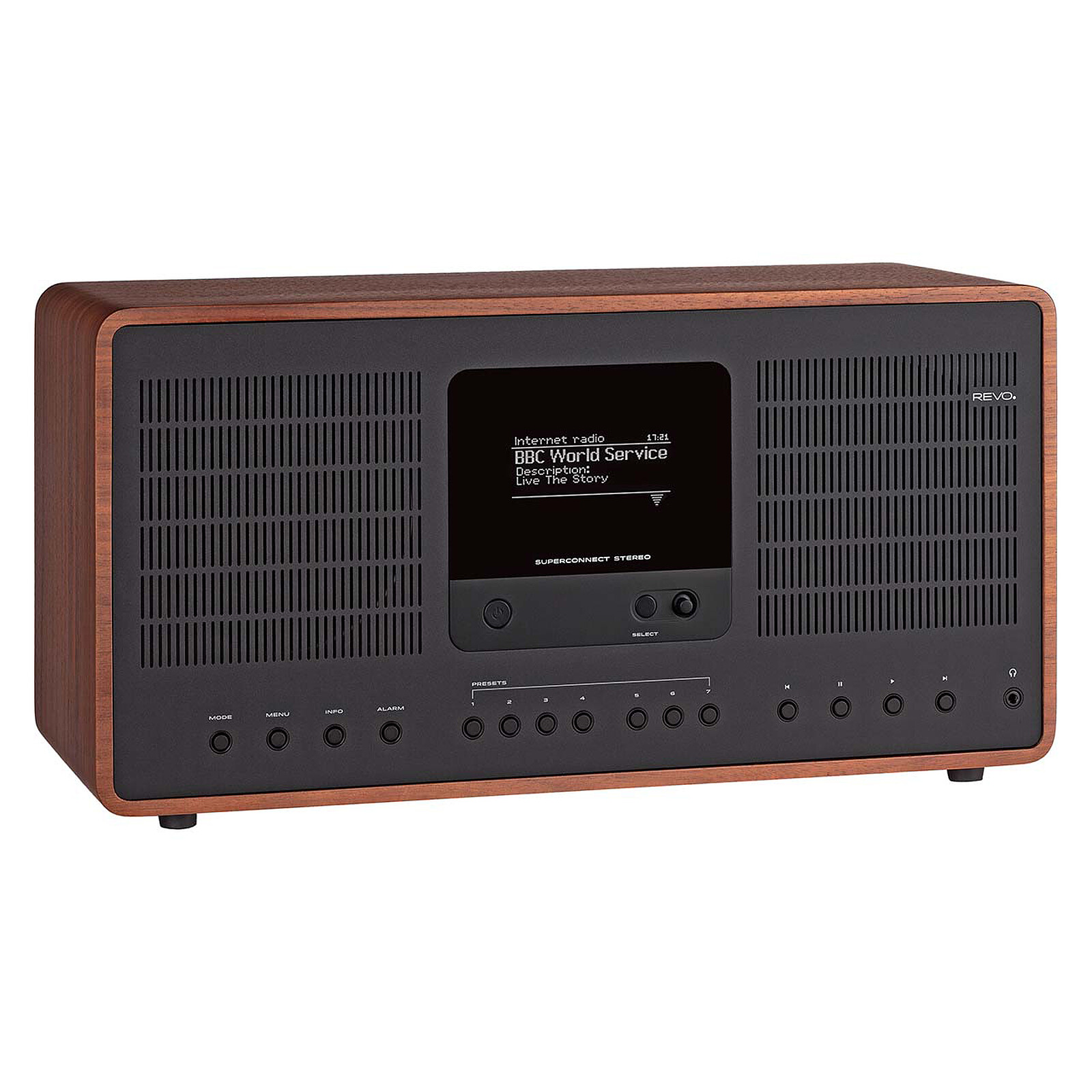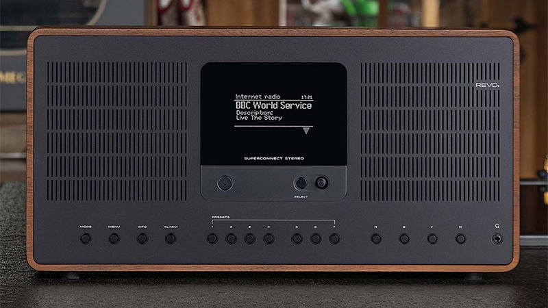 Conçue par Revo la radio SuperConnect Stereo est équipée pour recevoir une large gamme de stations de radio, notamment DAB, DAB+, FM avec RDS et radio Internet Wi-Fi. Elle vous donne accès à plus de 36 000 stations de radio du monde entier. Sa capacité à communiquer avec des appareils et des services externes est inégalée, car en effet elle est équipée de la technologie Bluetooth qui vous permet de profiter de tous les avantages du streaming de qualité CD à partir de votre smartphone ou de votre tablette. Vous pouvez facilement avoir accès aux plateformes de streaming telles que Spotify Connect, Amazon Music et Deezer. Pour vous permettre de suivre vos stations de radio favorites, la SuperConnect Stereo est dotée d'un superbe écran graphique OLED et d'un joystick de pilotage qui ajoute une vraie touche de modernité. L'électronique audio brevetée et la technologie des haut-parleurs DMR à diaphragme qui équipent également la SuperConnect Stereo délivrent 30 watts de son stéréo numérique clair avec des basses profondes et riches.