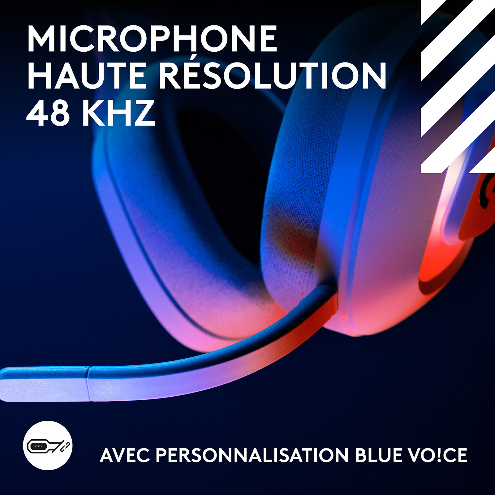 - Microphone haute résolution 48 kHz avec Blue VO!CE : voix claire et personnalisable