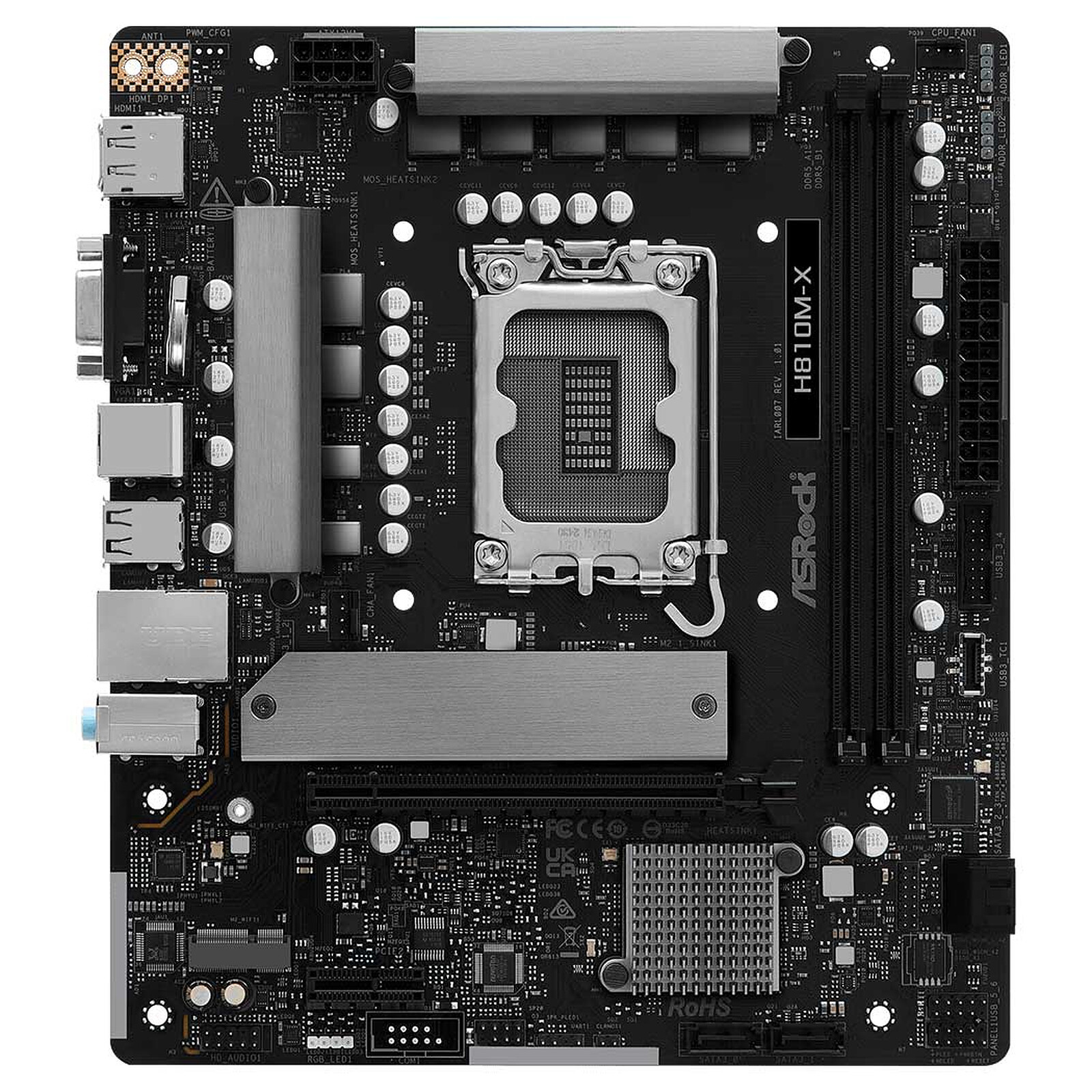 La carte mère ASRock H810M-X est conçue pour accueillir un processeur Intel Core Ultra série 200. Elle permettra l'assemblage d'une configuration performante et efficace au coût maitrisé. Avec la prise en charge de la mémoire DDR5 en double canal et un slot PCIe 4.0 x16, cette carte offre une base idéale pour des configurations puissantes et réactives, taillées pour le gaming ou la création de contenus.