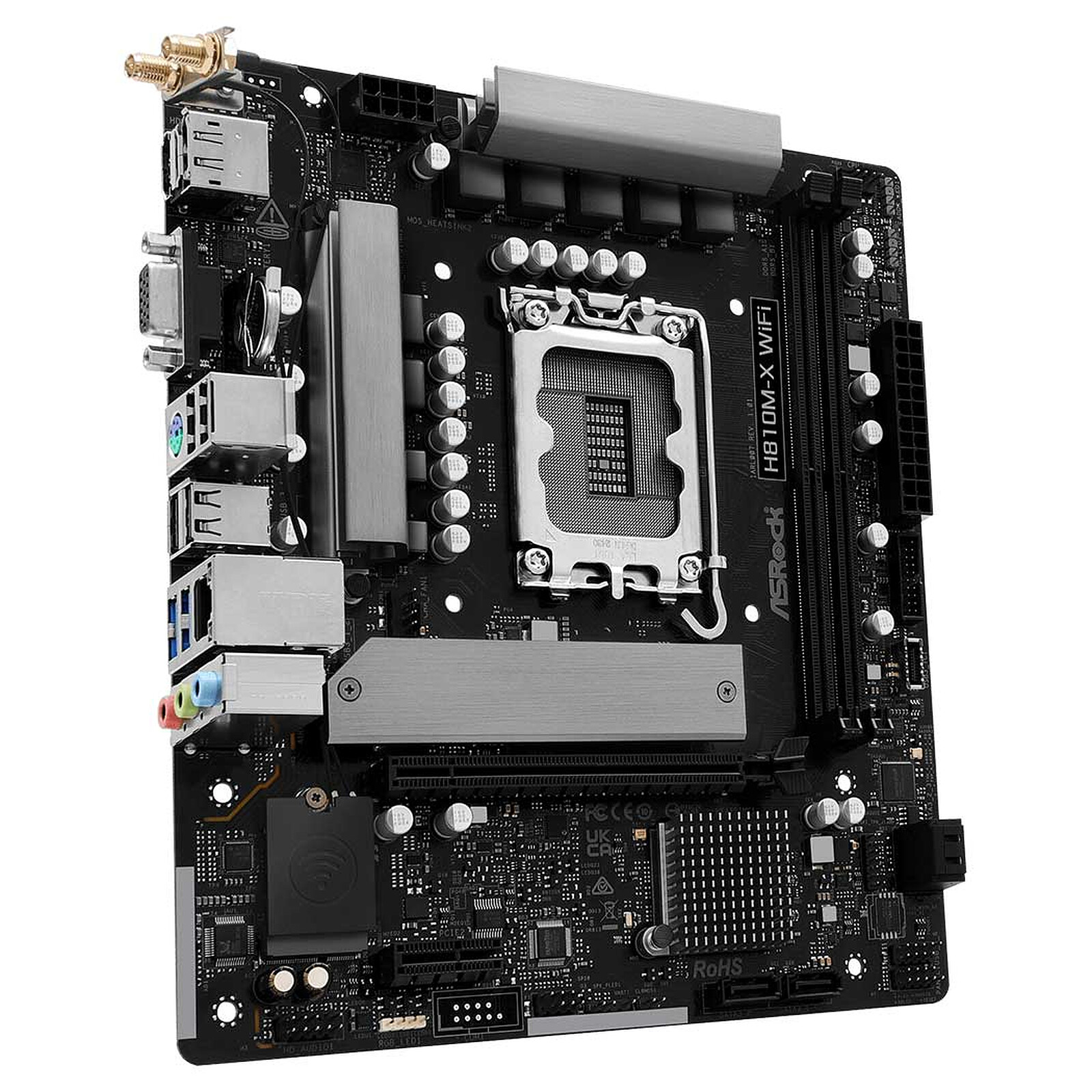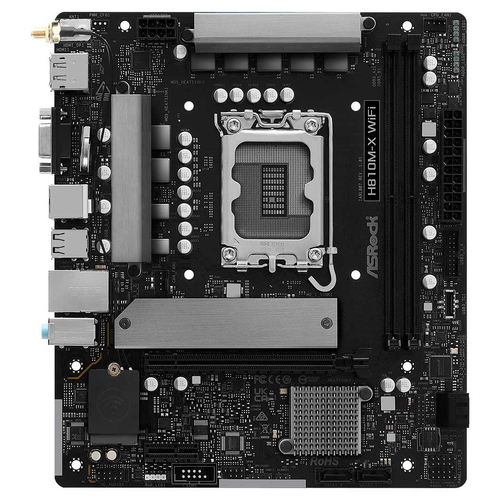 La carte mère ASRock H810M-X WiFi est conçue pour accueillir un processeur Intel Core Ultra série 200. Elle permettra l'assemblage d'une configuration performante et efficace au coût maitrisé. Avec la prise en charge de la mémoire DDR5 en double canal et un slot PCIe 4.0 x16, cette carte offre une base idéale pour des configurations puissantes et réactives, taillées pour le gaming ou la création de contenus.