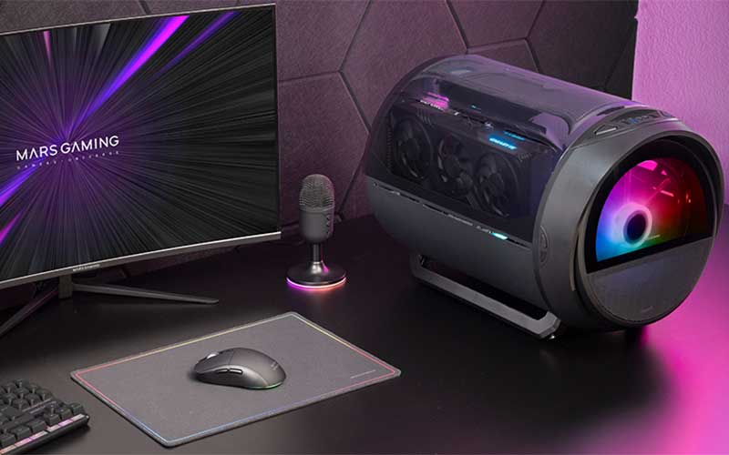Mars Gaming bouscule les codes établis et offre une esthétique gaming unique avec son boîtier MC-CYLON qui présente un design cylindrique inspiré des turbines à hautes performances. Il bénéficie d'un spectaculaire ventilateur frontal RGB Chroma de 200 mm et d'un ventilateur arrière de 120 mm. son design "OpenView" avec fenêtre supérieure incurvée et son châssis compact Micro-ATX allient compacité et performance.