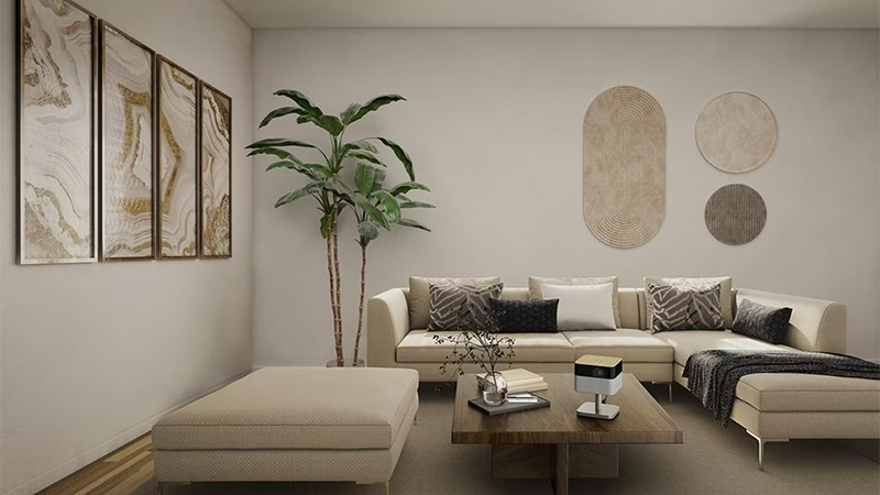 Un projecteur 4K avec pied intégré, à la fois élégant et très facile à utiliser