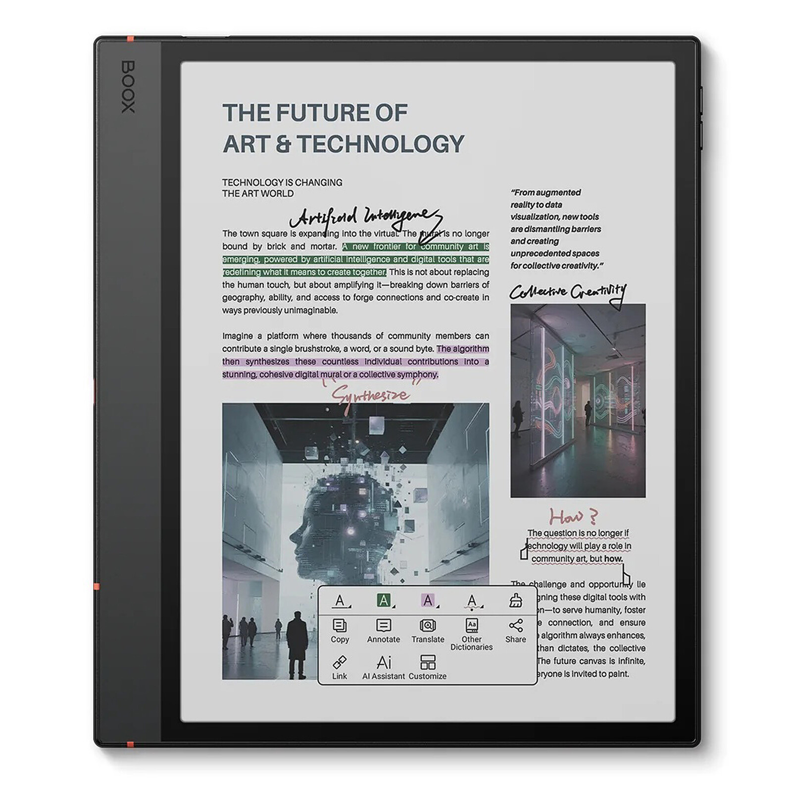 Et vous pouvez faire beaucoup plus avec ce bloc-notes qui peut aussi se transformer en liseuse polyvalente grâce aux applications téléchargeables sur Android 15 : divisez la page en sections, zoomez pour lire confortablement, recherchez des mots dans le dictionnaire et des phrases sur le site Web en un seul clic, puis écoutez des histoires en transformant le texte en parole. C’est toujours aussi coloré et puissant. L'expérience reste toujours si enthousiasmante.