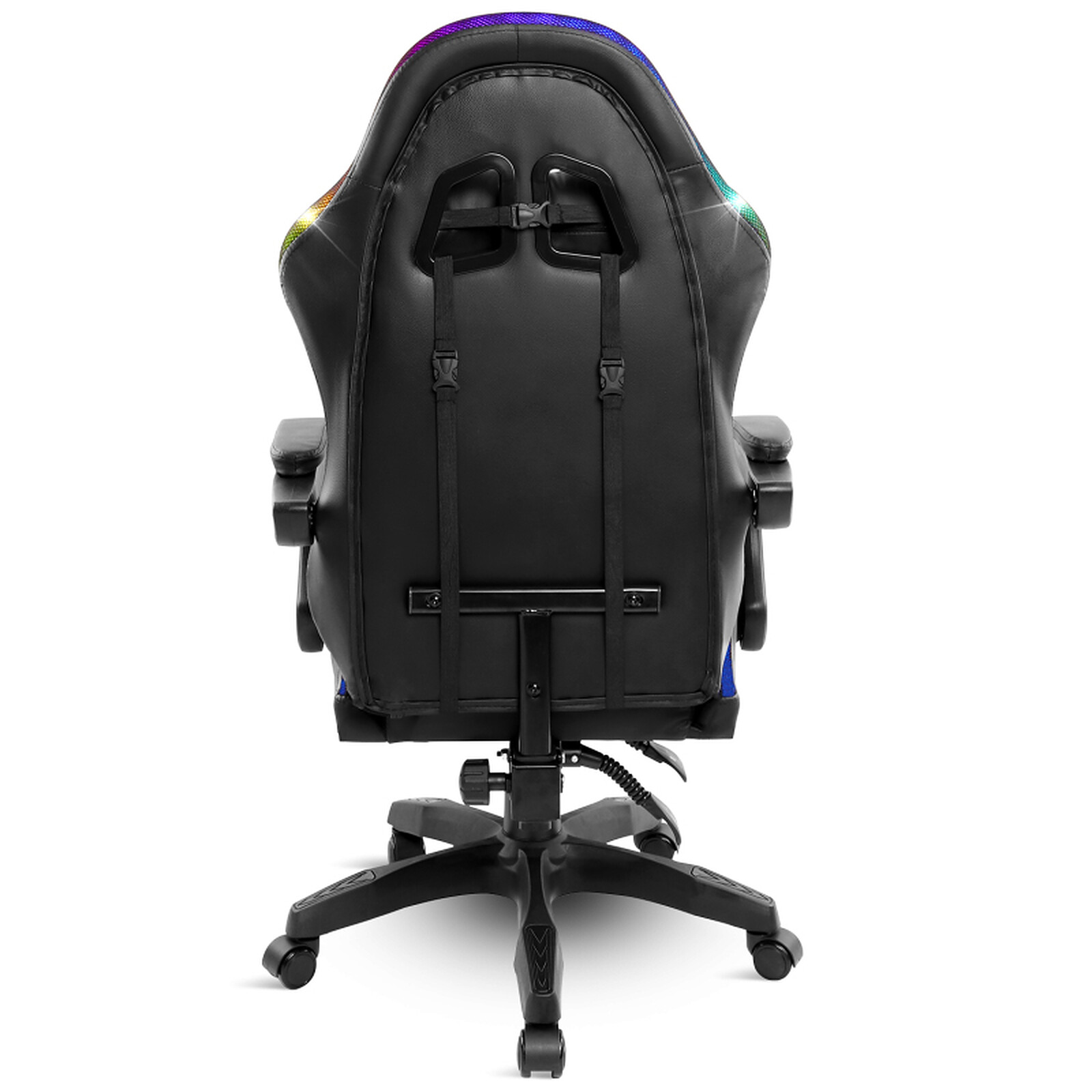 Siège en similicuir pour gamer - Dossier réglable à 135° - Accoudoirs fixes - Repose jambes - RGB - Poids maximal 120 kg