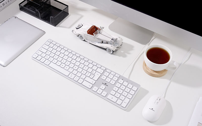 Le Bluestork Pack Mac offre une expérience fluide et agréable. Son clavier à touches ciseaux garantit une frappe silencieuse et précise, tandis que ses 13 raccourcis multimédias facilitent la gestion de vos tâches. La souris filaire, équipée d’un capteur haute précision 2400 DPI, assure un contrôle réactif et précis, parfait pour le travail ou la création.