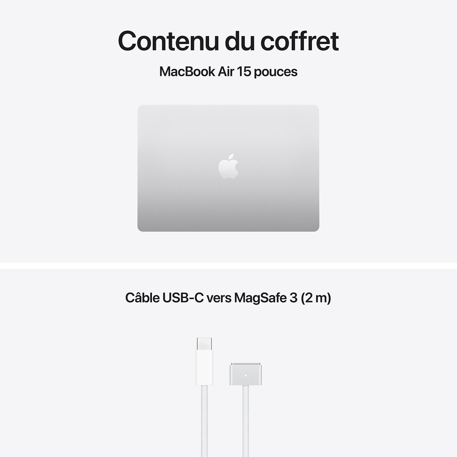 - ADAPTATEURS SECTEUR – Veuillez noter que le MacBook Air (15 pouces) est livré avec un câble de charge USB C vers MagSafe 3, mais sans adaptateur secteur. Un adaptateur secteur USB C ou une autre source d’alimentation USB PD capable de fournir 35 W (ou plus) est nécessaire pour recharger cet appareil. Pour une recharge optimale, Apple recommande d’associer ce Mac à l’Adaptateur secteur double port USB C 35 W ou à l’Adaptateur secteur USB C 70 W pour profiter de la charge rapide (jusqu’à 50 % de charge en 30 minutes)6.