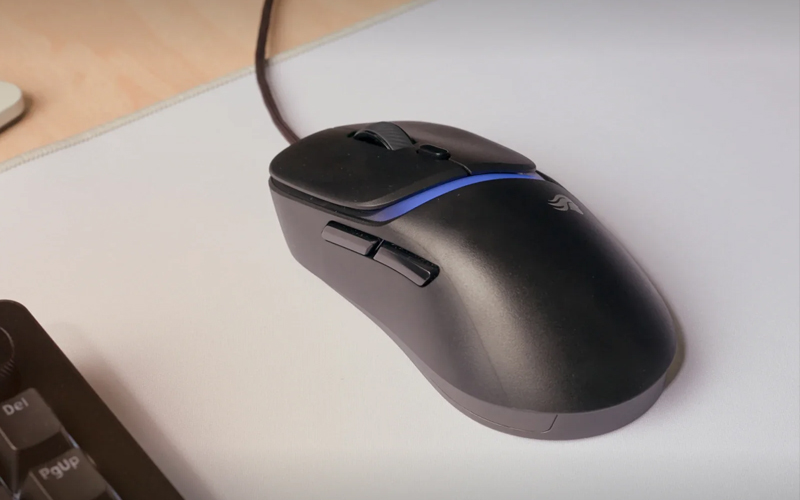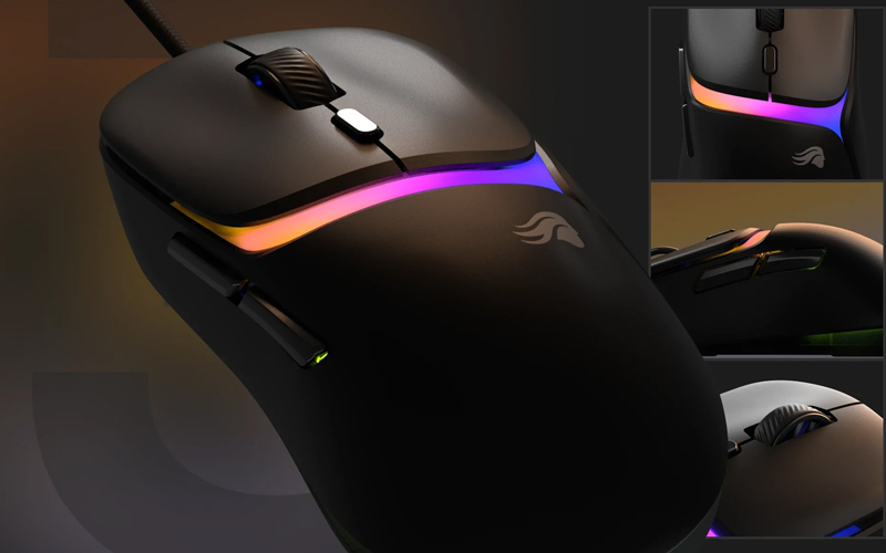 Son châssis fermé conserve un poids de 57 g, ce qui la place parmi les souris ergonomiques légères de sa catégorie. La glisse repose sur des patins 100% PTFE, tandis que l’éclairage RGB à double zone permet d’ajouter une personnalisation visuelle au setup.