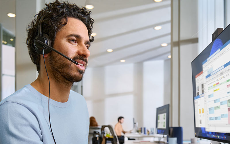Léger (environ 97 g) et équipé d'un coussinet souple à mémoire de forme, il assure un port confortable tout au long de la journée. Sa connectivité USB-C avec adaptateur USB-A permet une installation plug-and-play rapide et une compatibilité étendue avec les principales plateformes collaboratives.