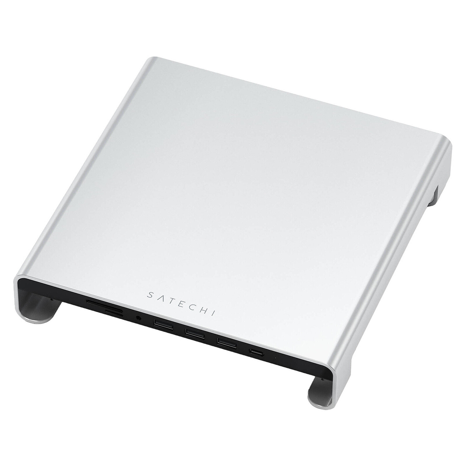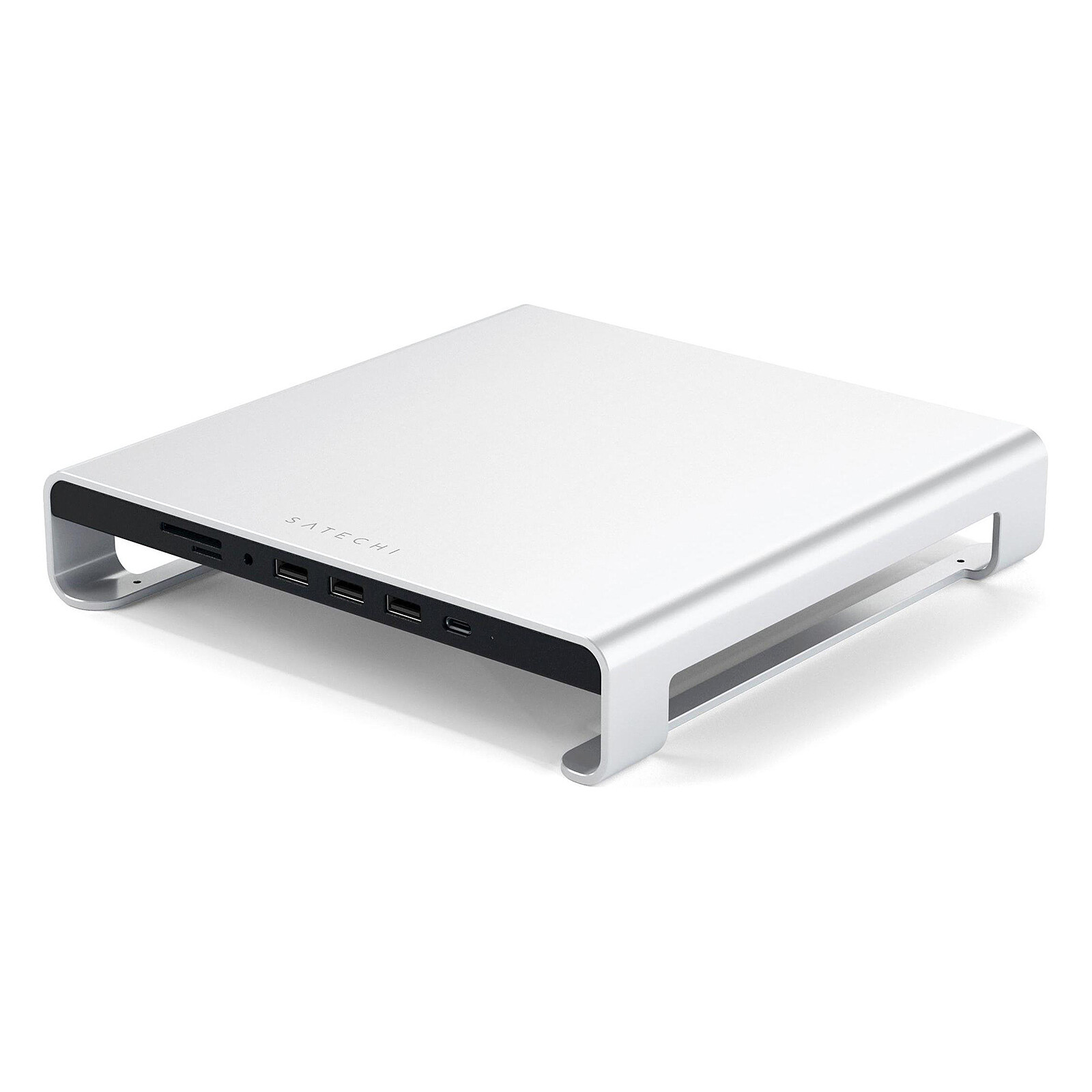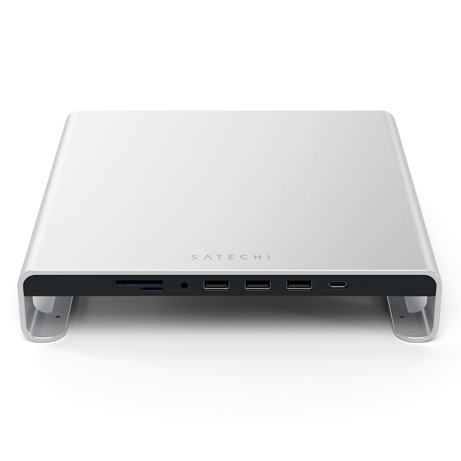 Proposé par Satechi ce support iMac avec hub USB-C a été conçu en aluminium. Robuste et sûr, c'est la solution 2 en 1 idéale pour améliorer et rehausser votre espace de travail. Avec les ports USB 3.0 intégrés, le port USB-C, les emplacements pour carte micro / SD et la prise audio, vos ports les plus utilisés sont désormais à portée de main pour une productivité maximale. Son design élégant et moderne en aluminium complète parfaitement votre iMac et élève l'écran de votre moniteur jusqu'à un angle de vision optimal. Ce support a été conçu pour tous les modèles d'Apple iMac. Il est fourni avec un adaptateur Type-A / Type-C.