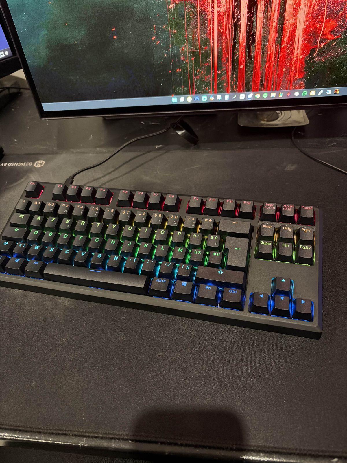 Concernant les keycaps, même si ceux d'origine ne sont pas de la plus haute qualité, ils restent nettement plus épais que ceux que j'ai pu expérimenter sur d'autres claviers mécaniques. Cette épaisseur contribue à améliorer à la fois le son et la sensation de frappe. Les switchs linéaires offrent une expérience agréable, bien qu'ils présentent un peu plus de résistance que ce à quoi je suis habitué. Toutefois, pour un utilisateur moyen, ils devraient sembler standard.