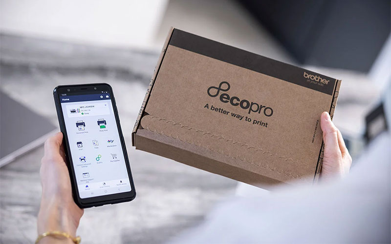 Avec EcoPro, vous pouvez choisir un abonnement qui correspond à votre volume d'impression, que vous imprimiez 50 ou 700 pages par mois. Les consommables sont commandés automatiquement et livrés gratuitement dès que vous êtres à court d'encre ou de toner. Vous pouvez modifier votre forfait mois par mois en fonction du nombre de pages que vous imprimez et vous pouvez résilier à tout moment. Pour une éxpérience d'impression sans efforts, téléchargez Brother Mobile Connect, ajoutez votre imprimante Brother, sélectionnez l'abonnement choisi et vous serez prêt à imprimer.