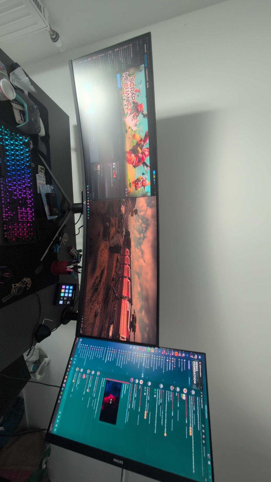 A noter que l'on peut bien pivoter les écrans d'horizontal à vertical. Je n'osais pas au début car l'attache est tout juste clipser et cela laisse penser que ça ne tiendrait pas dans l'autre position et finalement ça fonctionne très bien.