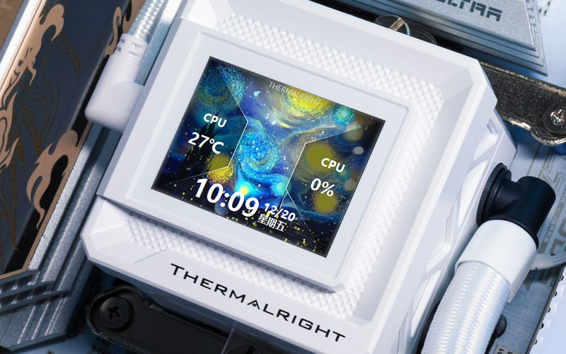 Le watercoooling tout-en-un Thermalright Frozen Warframe SE 240 ARGB prendra en charge de manière efficace le refroidissement de votre processeur. Son radiateur de 240 mm en aluminium, assure une dissipation thermique efficace. Il est complété par les ventilateurs TL-P12-S à haute pression statique et pourvus d'un éclairage ARGB discret. Le Frozen Warframe 240 SE ARGB se démarque par son écran LCD de 2.4 pouces avec une résolution de 320 x 320 pixels, offrant des options de personnalisation et de surveillance quasi infinies. Il est compatible avec les sockets récents, notamment Intel LGA 1851/1700 et AMD AM5.