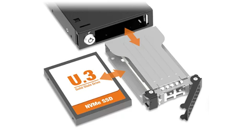Le MB601V5K-B prend en charge les SSD NVMe U.2/U.3 d'une hauteur comprise entre 7 et 15 mm