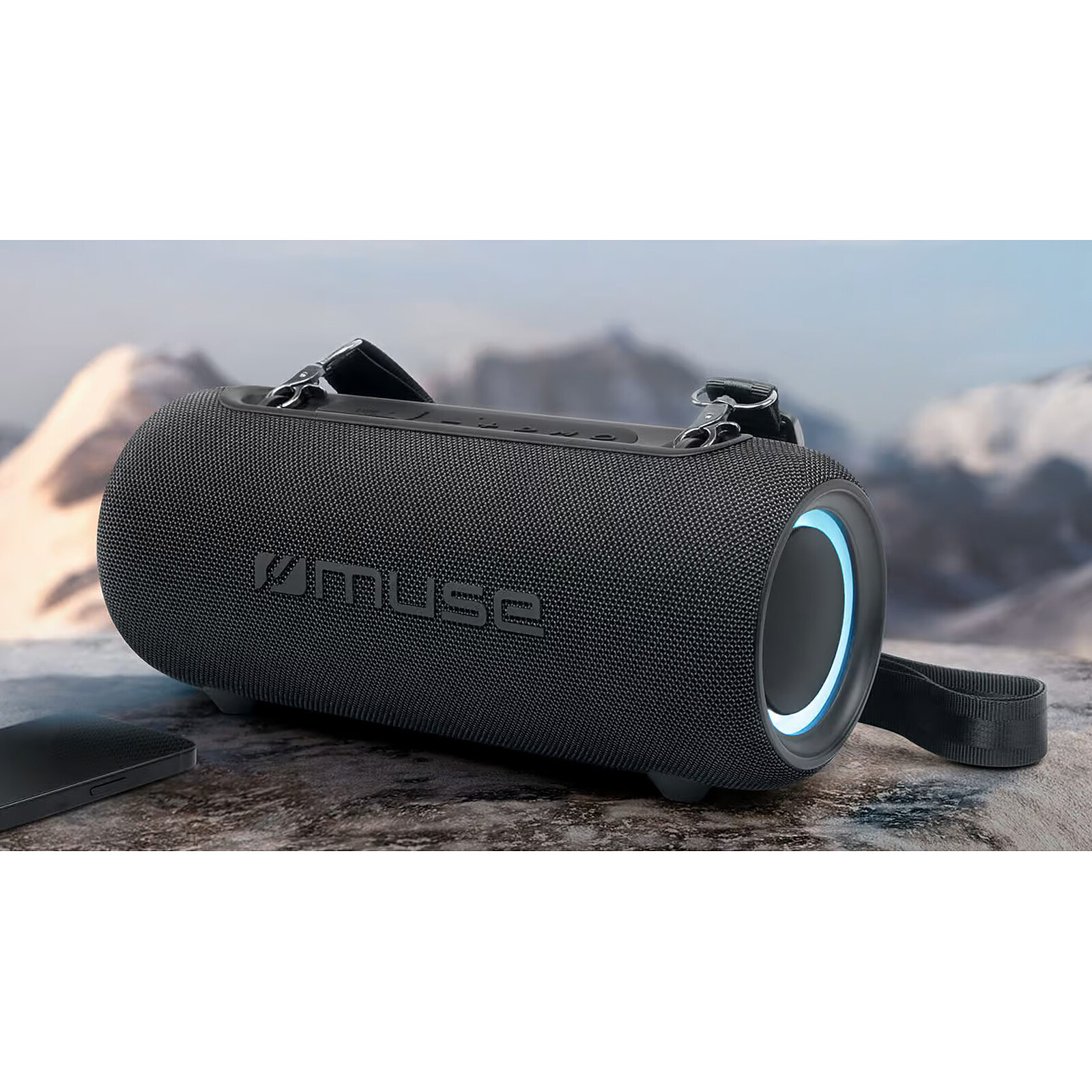 Reprenant l'apparence moderne de sa devancière, vous offrant une puissante de 30 W et conçue pour être emportée partout avec vous, l'enceinte sans fil Muse M-785 BT diffusera toute votre musique préférée grâce à sa connectivité Bluetooth et son port USB compatible MP3. Elle est capable d'imposer une ambiance des plus fun en produisant divers effets lumineux. Elle diffuse votre musique avec une portée pouvant aller jusqu'à 10 m. Sa batterie lithium-ion intégrée de 3600 mAh 3.7 V vous assure une grande autonomie pour une durée de lecture pouvant aller jusqu'à 11 heures. Sa conception IPX5 fait qu'elle est résistante aux projections d’eau. Vous pouvez donc la poser à côté de votre piscine. Enfin, elle est dotée d'une bandoulière avec mousquetons robustes pour être emportée partout avec vous, en toute sécurité, encore plus facilement et confortablement.