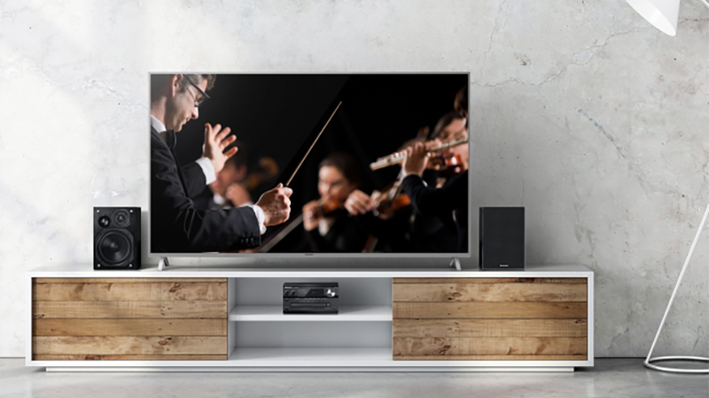 Grâce au port auto AUX-IN pour appareils audio et de streaming il vous suffit de connecter vos périphériques audio ou de streaming, tels que Chromecast Audio. Même si la SC-PMX92 est éteinte, le signal sonore du périphérique sera reconnu. Le système s'allumera automatiquement, et la musique sera diffusée à partir du terminal auxiliaire. La SC-PMX92 est équipée de terminaux d’entrée optique qui facilitent sa connexion à votre téléviseur. Profitez d'un son exceptionnel qui accompagnera à merveille les images diffusées.
