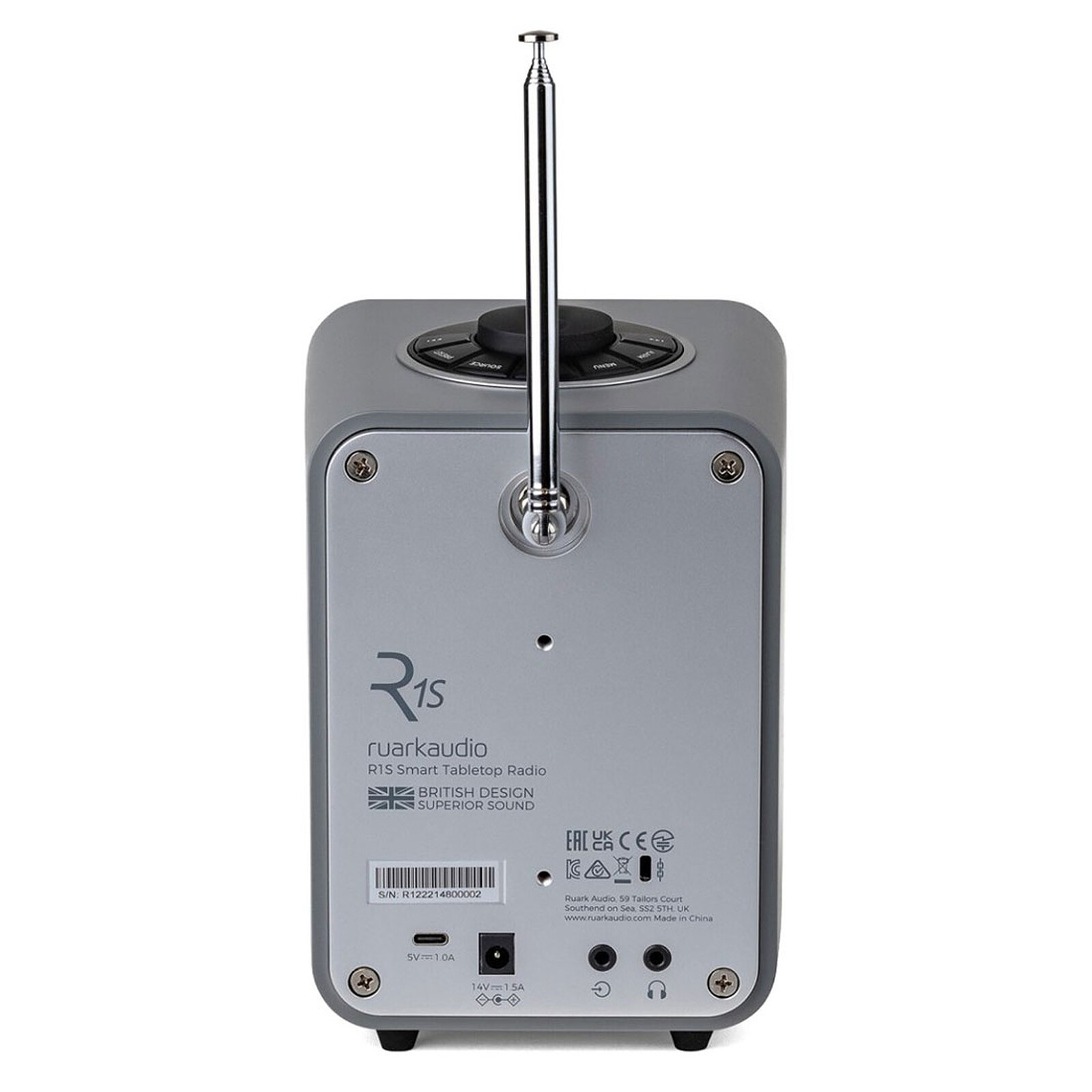 Utilisée en tant que radio-réveil, la R1S possède 2 alarmes indépendantes, réglables selon vos préférences. Des fonctions “minuterie de sommeil” ou “répétition de l’alarme” sont présentes. Une sortie casque ainsi qu'une entrée jack 3,5 mm sont présentes à l’arrière de la R1S. Un port USB-C autorise la recharge d’un smartphone mais surtout, permet à la R1S de lire les fichiers audios contenus sur un clé.