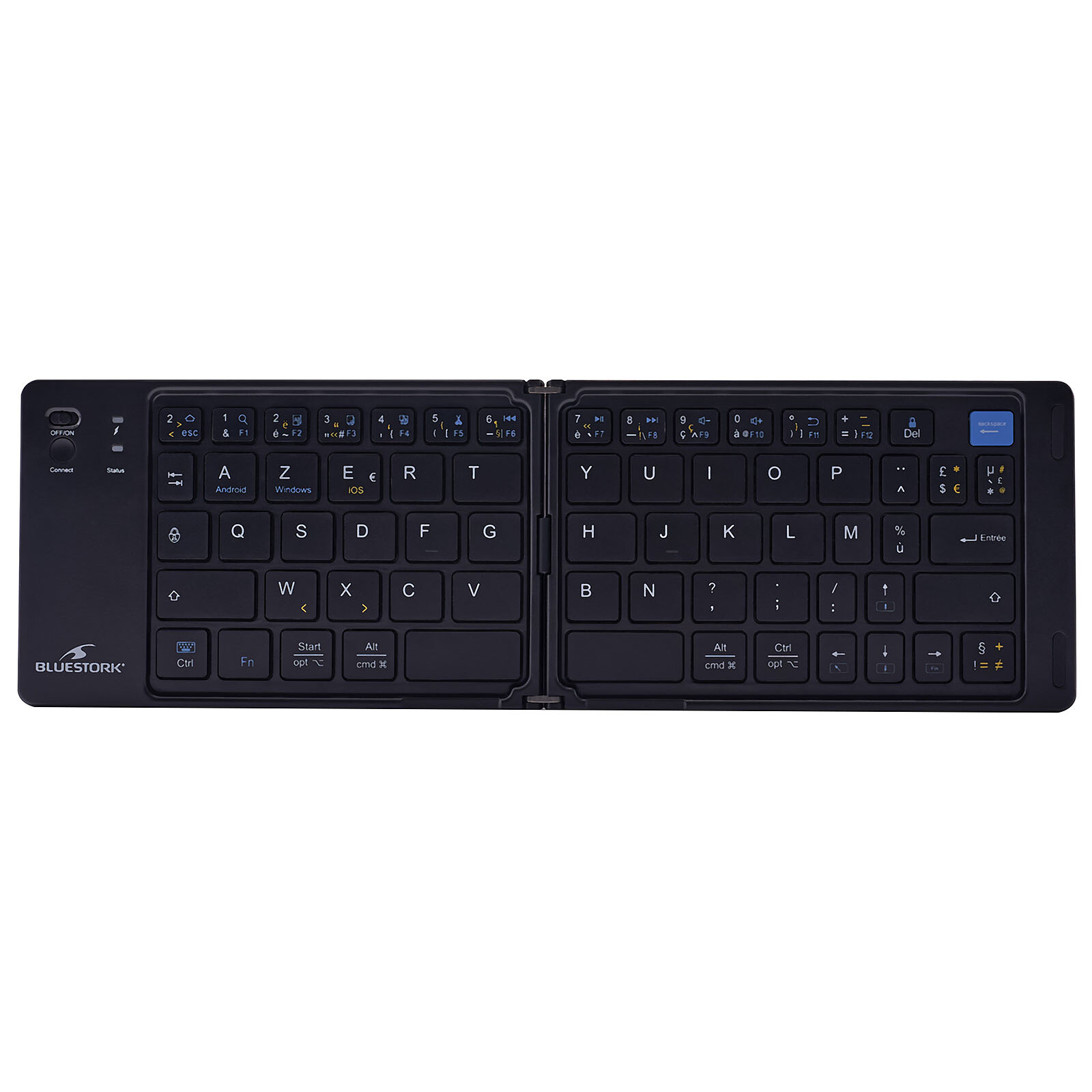 Le Bluestork KB-Mini Fold est un clavier pliable Bluetooth qui allie mobilité et praticité sans compromis sur le confort. Avec ses touches ciseaux silencieuses, son format ultra-compact et sa compatibilité multiplateforme (Windows, iOS, Android), il s’adapte à tous vos besoins nomades. Son autonomie de 40 heures et son rechargement en USB-C assurent une utilisation continue, où que vous soyez.