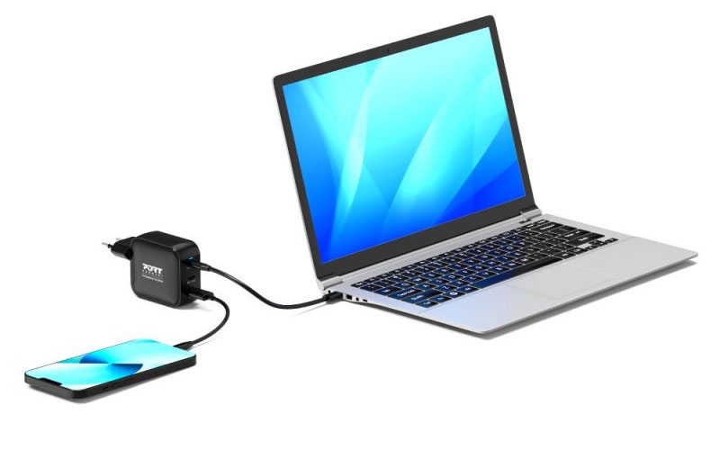 Ce chargeur Port Designs repose sur la norme USB Power Delivery, permettant d’ajuster automatiquement la puissance délivrée en fonction de l’appareil connecté, dans la limite de 100 W. L’utilisation de la technologie GaN (nitrure de gallium) contribue à une meilleure efficacité énergétique et à une réduction de l’encombrement par rapport à un chargeur secteur classique.