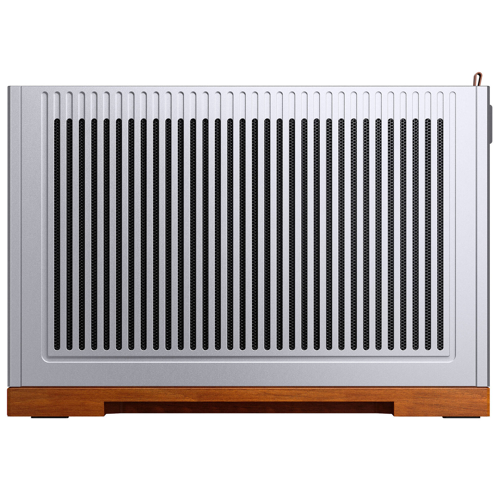 Le Jonsbo T9 séduit immédiatement par sa construction premium : panneaux en alliage d’aluminium de 4 mm d’épaisseur, renforts en acier et une base en bois noble (noyer) conférant à l’ensemble une esthétique unique, élégante et durable. Malgré ses dimensions ultra-compactes (155 x 325 x 224 mm) et un poids plume de 3,85 kg, il offre une compatibilité surprenante avec des composants modernes : prise en charge de cartes mères Mini-ITX, alimentation SFX jusqu’à 100 mm, et carte graphique jusqu’à 310 mm de longueur (avec câble riser inclus), permettant de loger des GPU puissants dans un format réduit. Pensé pour un montage soigné, il intègre également des emplacements de stockage flexible (SSD 2,5" et HDD 3,5"), une connectique moderne avec port USB-C en façade, et des options de ventilation optimisées via un emplacement pour ventilateur 120 mm. Chaque détail du T9 vise à offrir une expérience à la fois performante, esthétique et parfaitement adaptée aux configurations compactes.