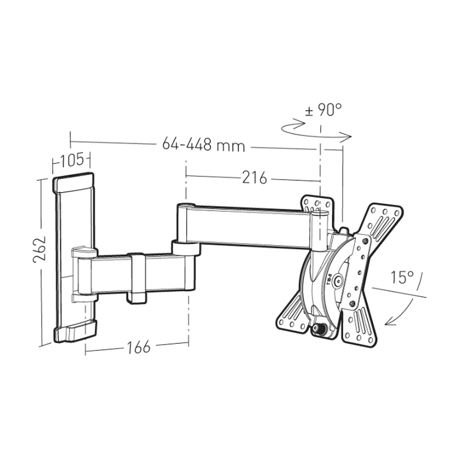 Support inclinable et orientable avec déport pour écrans de 19'' à 49'' - Distance maximale du mur 448 mm