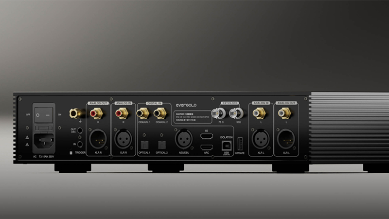 Pensé comme un véritable hub audio, l’Eversolo DAC-Z10 offre une connectique extrêmement complète pour s’intégrer facilement dans tout environnement Hi-Fi. Il accepte de nombreuses sources numériques grâce à ses entrées USB-B, I2S, AES/EBU, coaxiales, optiques et HDMI ARC, tout en proposant une connexion Bluetooth 5.0 pour la diffusion sans fil depuis un smartphone ou une tablette. Son préamplificateur symétrique avec contrôle de volume analogique R-2R garantit une gestion du signal particulièrement transparente pour les sorties XLR et RCA. Enfin, son amplificateur casque haute performance, doté de plusieurs niveaux de gain et d’une détection automatique d’impédance, permet d’alimenter efficacement un large éventail de casques audiophiles.