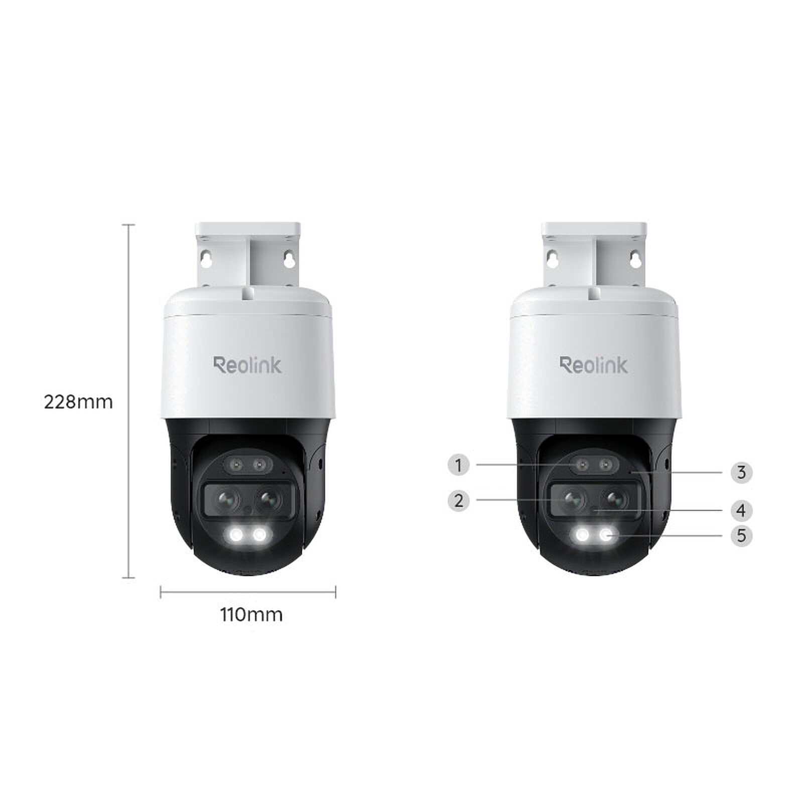 Dotée d’une double optique combinant grand angle et téléobjectif, la caméra TrackMix P760 capture simultanément une vue d’ensemble et des gros plans ultra-détaillés en 4K, garantissant une surveillance complète sans angle mort. Son système de suivi automatique avec zoom intelligent détecte et suit les personnes, véhicules ou animaux en mouvement pour ne rien manquer de l’action.