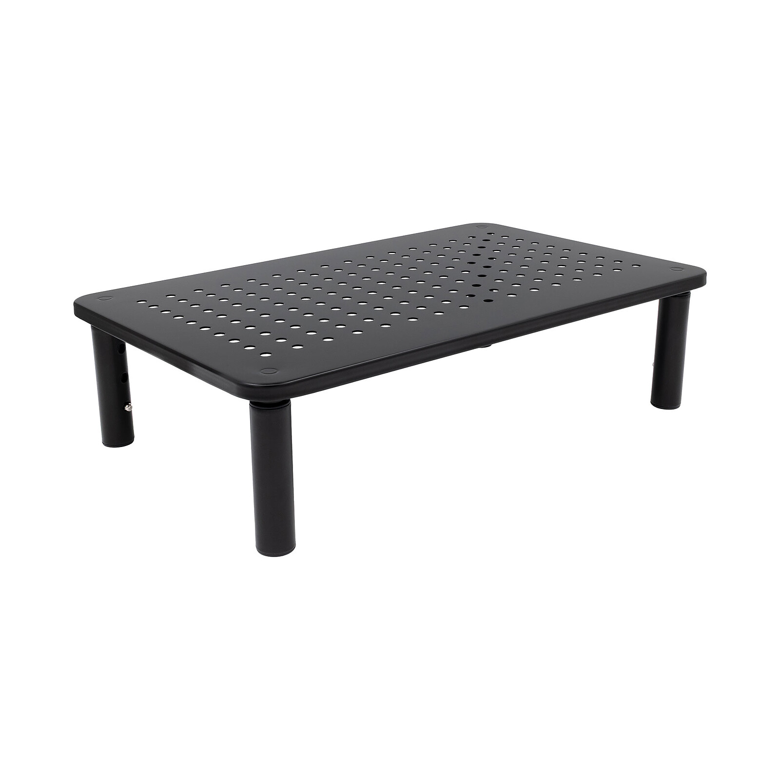 Fabriqué en acier, le support INOVU MS-101214 allie durabilité et stabilité. Ses quatre pieds réglables garantissent une base solide, tandis que son système de réglage en hauteur, accessible via un simple bouton, permet d’ajuster la plateforme sans effort. Avec une capacité de charge maximale de 20 kg, il supporte la plupart des écrans du marché. Ses dimensions compactes (370 x 235 x 78,7 mm) en font un accessoire discret et facile à intégrer sur tout bureau.