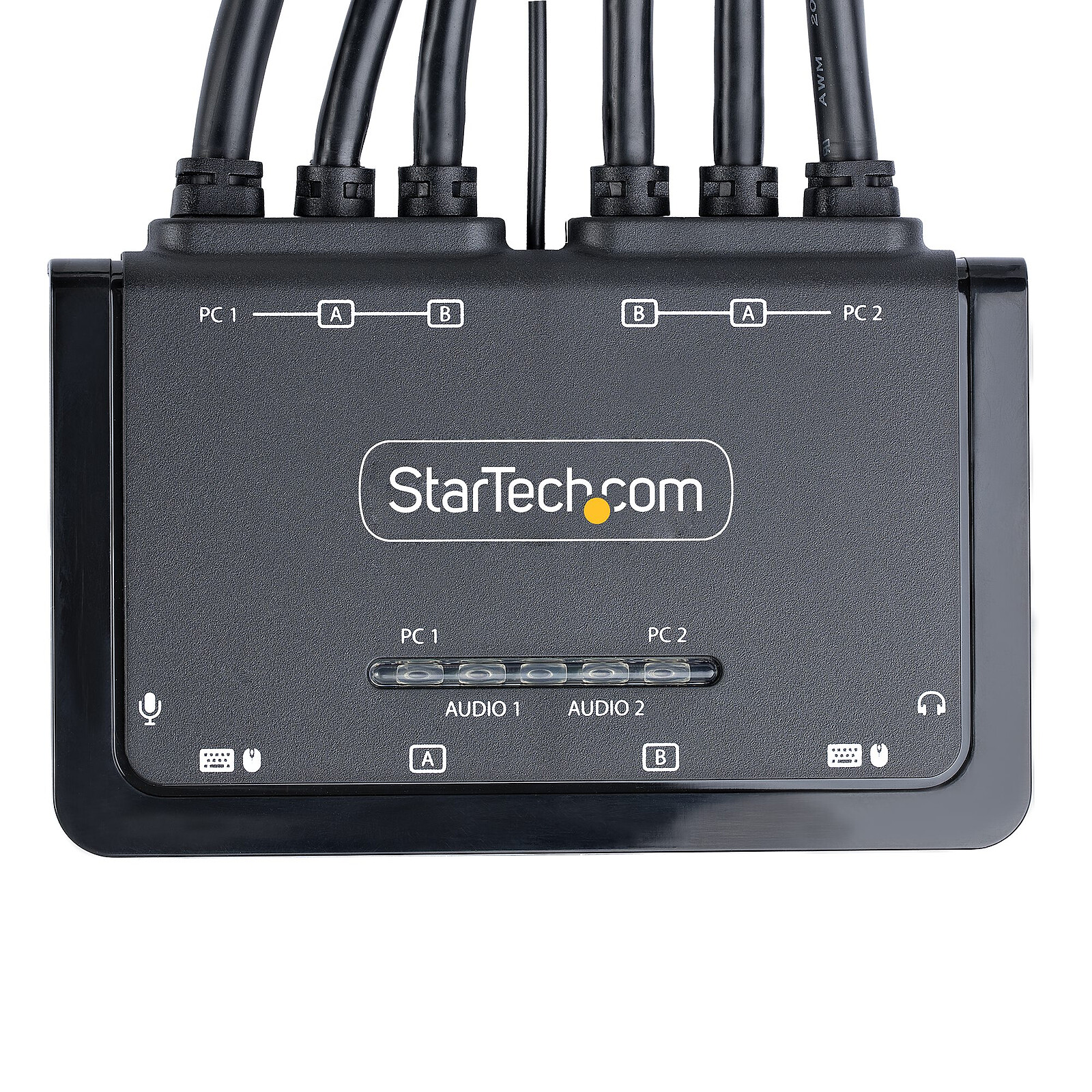 Simplifiez radicalement votre environnement de travail avec le switch KVM StarTech.com C2-DD46-UA2-CBL-KVM, conçu pour répondre aux exigences des professionnels modernes. Grâce à sa conception intelligente et à ses câbles intégrés, ce commutateur vous permet de piloter facilement deux ordinateurs, qu’il s’agisse d’un PC de bureau ou d’un ordinateur portable USB-A, à partir d’un seul ensemble clavier, souris et écran DisplayPort 4K. Idéal pour les environnements multitâches, le télétravail ou les postes hybrides, il garantit une expérience fluide et sans compromis sur la qualité d’affichage, avec une résolution Ultra HD jusqu’à 3840 x 2160 à 60 Hz. Compact, auto-alimenté et prêt à l’emploi, il s’intègre parfaitement à tout espace de travail en éliminant le besoin d’adaptateurs ou de câbles supplémentaires, pour une installation rapide et sans encombrement.Pensé pour maximiser la productivité, ce switch KVM se distingue par sa grande polyvalence et ses fonctionnalités avancées. Il propose plusieurs modes de commutation, bouton déporté ou raccourcis clavier, pour un contrôle rapide et intuitif entre les systèmes. Sa compatibilité étendue avec Windows, macOS, Linux et ChromeOS, ainsi qu’avec les plateformes Intel, AMD ou Apple (y compris M1/M2), en fait une solution universelle. Les professionnels IT apprécieront également ses outils de gestion et de surveillance USB, tandis que sa fonction de commutation audio indépendante assure une continuité sonore même lors du changement d’ordinateur. Robuste, fiable et conçu pour un usage intensif, ce KVM représente un véritable atout pour les configurations exigeantes, du montage vidéo à la CAO en passant par la création de contenu.