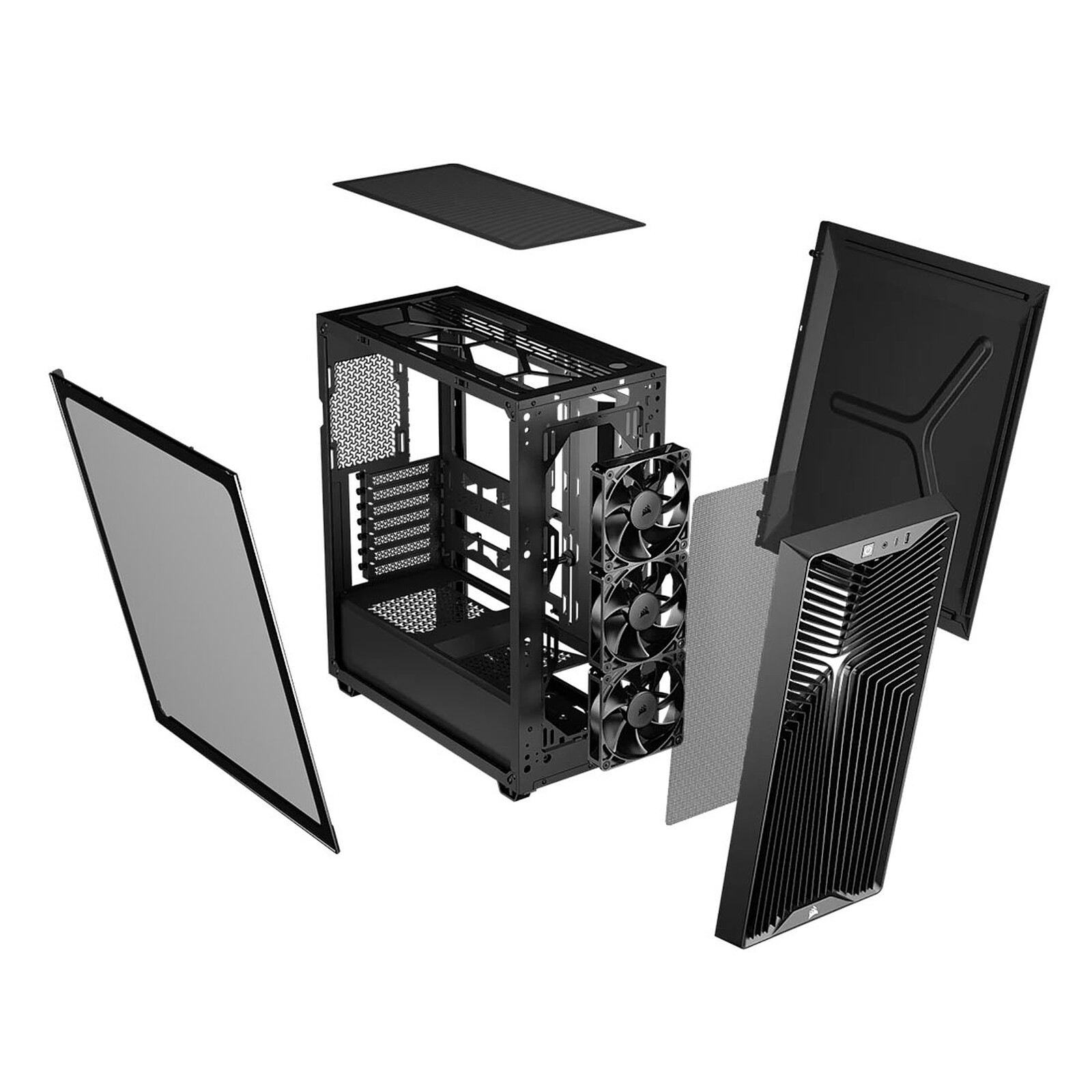 Le Corsair 3200D RS est un boîtier moyen tour pensé pour les configurations modernes exigeantes, combinant performance thermique et design épuré. Axé sur le flux d’air, il intègre une conception optimisée pour maintenir des températures maîtrisées, même avec des composants haut de gamme. Livré avec trois ventilateurs RS120 performants, il offre un refroidissement efficace dès le premier montage.