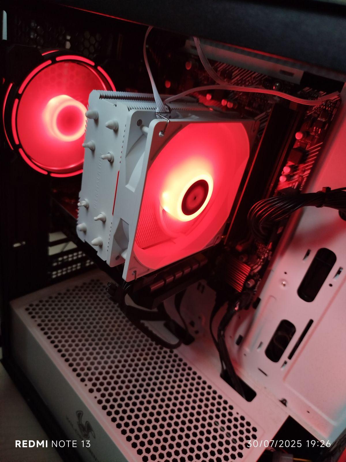 Mon ancien ventilateur (photo ci-dessous) faisait trop de bruit et n'était pas très plaisant à l'oeil, donc j'ai décidé de le changer pour le Thermalright Assassin X 120 Refined SE White ARGB, je n'ai pas été déçu, le montage était simple et rapide, j'ai même pu le raccorder à mon controlleur ARGB, et il marche parfaitement!