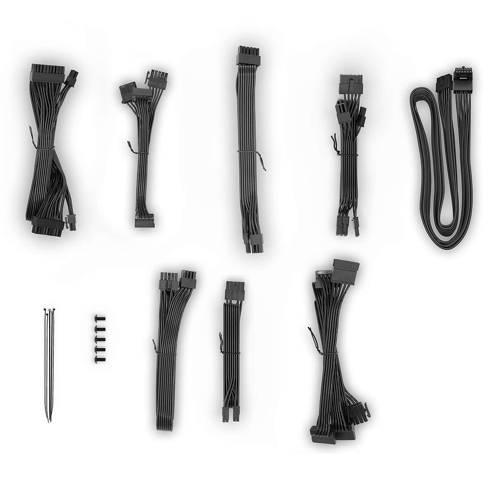 Alimentation modulaire avec des câbles de longueur suffisantes et le jeu de câbles fournis est complet. Le ventilateur est silencieux. Très bon rapport qualité/prix.