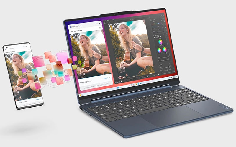Smart Share relie instantanément votre smartphone à votre ordinateur portable via un capteur virtuel IA. Il vous suffit de poser votre appareil Android ou iOS sur votre ordinateur portable, puis d'effectuer un glisser-déposer. Modifiez des photos et partagez-les facilement. De plus, accédez et envoyez des messages textes depuis votre PC.