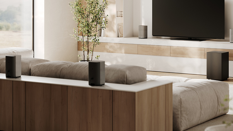 Dites adieu aux fils emmêlés avec les enceintes satellites actives sans fil et le caisson de basse de We. BOOST, les enceintes satellites actives sans fil et le caisson de basses. Conçus pour offrir un maximum de commodité et un minimum d'encombrement, ces composants sans fil facilitent la création d'une installation de home cinéma élégante et raffinée. La transmission sans fil garantit un son homogène sans câbles encombrants, tandis que les haut-parleurs satellites actifs et le caisson de basses offrent des performances sonores puissantes.