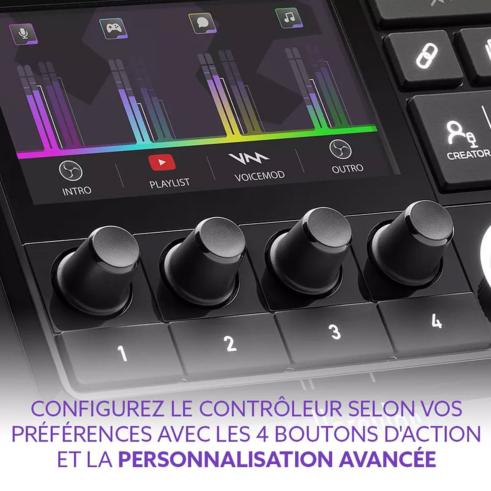 Besoin de régalges audio avancés pour aller encore plus loin, le Stream 200 XLR vous donne accès à un aux fonctions Muet pour liste d’éléments, Solo/Isoler source et Préamplificateur pour son vocal haute fidélité. L'Hercules Stream 200 XLR est entièrement personnalisable. Vous pouvez choisir les coiuleurs et le style des vumètres. Les fonds ainsi que les icônes sont personnalisables et il vous est possible de gérer facilement tous les profils. Il comprend aussi toutes les principales applications de streaming préintégrées (OBS, Streamlabs). Enfin, il est doté de guides intégrés (aide à la configuration, produit Plug-and-Play, interface utilisateur de type glisser-déposer).