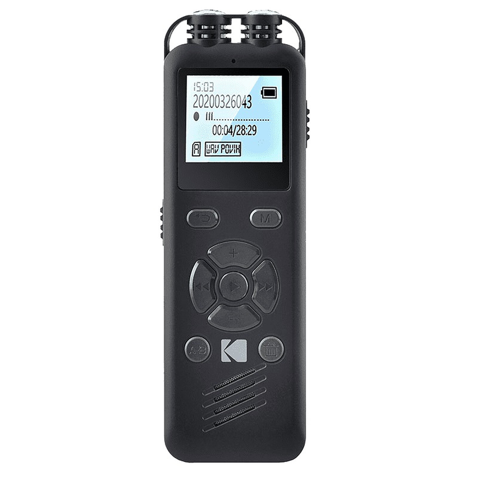 Grâce à son design compact et grâce à son fonctionnement intuitif, le dictaphone Kodak VRC250 sera idéal pour vous qui souhaitez réaliser instantanément des enregistrements audios aux formats WAV/MP3 où que vous décidiez d'aller. Grâce à sa batterie lithium intégrée vous profiterez d'une autonomie de 20 heures. Sa mémoire interne de 8 Go vous permettra d'enregistrer jusqu'à 581 heures de contenu pour un usage sans interruption.