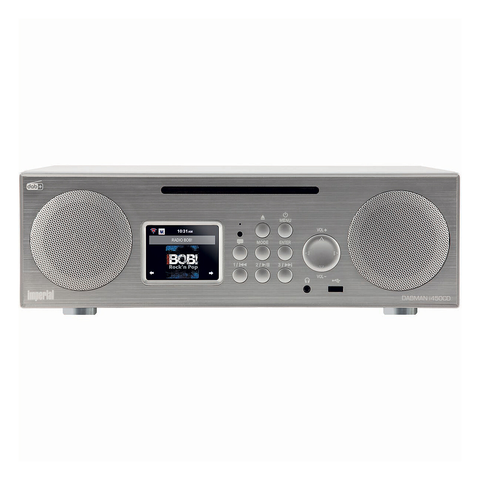 Le Dabman i450 CD est un système audio stéréo aux talents multiples : cet appareil multifonctionnel permet de recevoir la radio DAB+ et FM. Il peut également accéder à plus de 25 000 stations de radio Internet. Il permet l'utilisation de divers services de streaming tels que Napster, Tidal, Deezer et autres, et il dispose d'un lecteur de CD audio et MP3. Ses deux haut-parleurs de 3" combinés à un caisson de basse dans la base de l'appareil produisent un son stéréo incroyable qui peut être adapté aux préférences d'écoute de chacun grâce à différents réglages de l'égaliseur. L'écran couleur TFT 2,8'' (7,11 cm de diagonale) affiche des informations de fond utiles sur le programme en cours. Complet, ce système audio vous propose de nombreuses fonctions supplémentaires telles que le réveil intégré, UPnP et le Bluetooth.