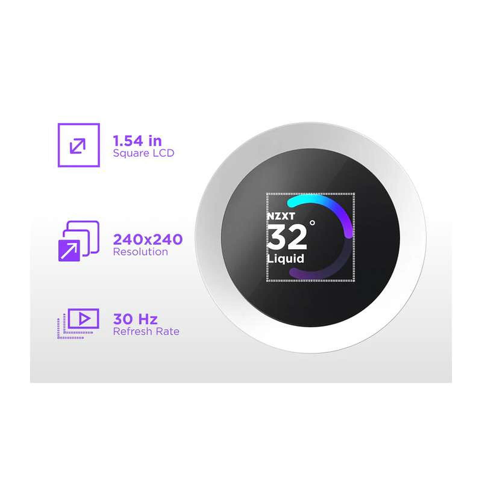 L’écran LCD carré de 1,54", personnalisable via le logiciel NZXT CAM, permet d’afficher des données système en temps réel, des images, GIFs, ou encore des intégrations web comme Spotify ou YouTube. Les ventilateurs RGB Core assurent non seulement un flux d’air performant, mais également un éclairage vibrant entièrement personnalisable. Grâce à la pâte thermique pré-appliquée, au câblage simplifié via un seul câble de dérivation, et aux supports de montage sans outil compatibles avec les sockets les plus récents (AMD AM5 et Intel LGA 1851), l’installation devient rapide, propre et accessible à tous les monteurs.