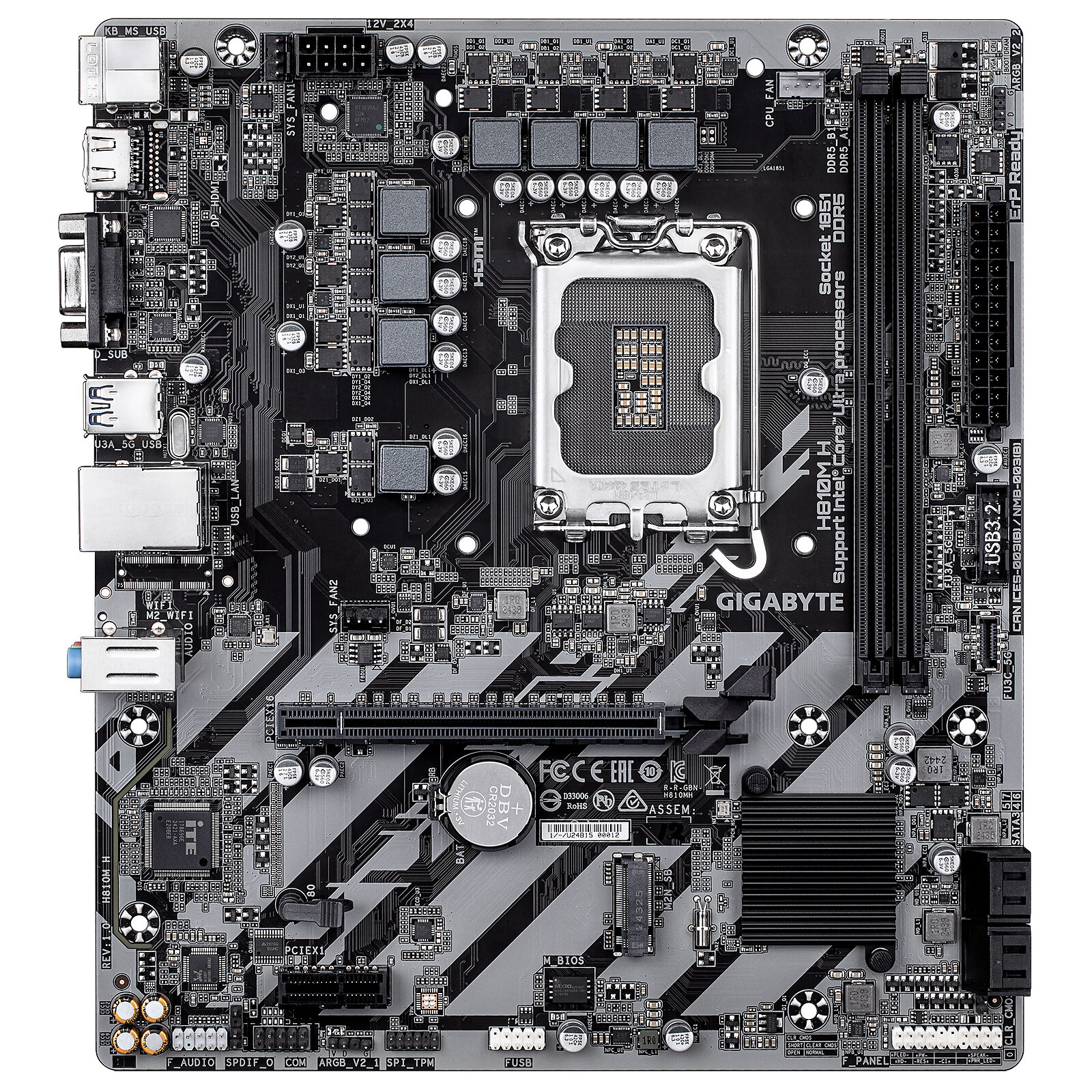 La carte mère Gigabyte H810M H est conçue pour offrir une plateforme stable et évolutive, parfaitement adaptée aux processeurs Intel Core et Core Ultra. Elle repose sur une architecture VRM hybride 4+1+2 de haute qualité, garantissant une alimentation précise et constante du CPU pour des performances durables, même en pleine charge. Avec la prise en charge de la mémoire DDR5 en double canal et un slot PCIe 4.0 x16, cette carte offre une base idéale pour des configurations puissantes et réactives, taillées pour le gaming ou la création de contenu exigeante.