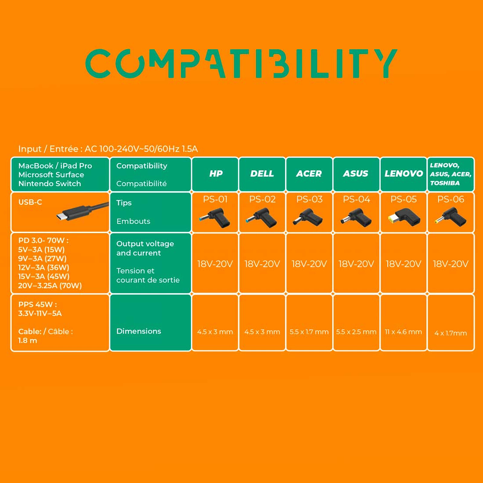 Le chargeur Advance QuickFlex Pro 70W est pensé pour simplifier votre quotidien numérique. Avec sa technologie GaN, le QuickFlex Pro délivre jusqu’à 70W de puissance dans un format mini. Avec son port USB-C et les 6 embouts fournis, que vous utilisiez un appareil HP, Dell, Lenovo, Microsoft Surface, MacBook, Samsung, Huawei ou encore une Nintendo Switch, ce chargeur s'adaptera à vos usages.
